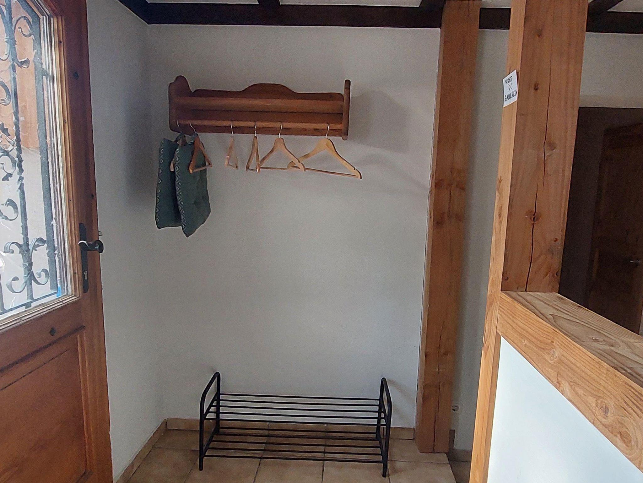 Im Flur gibt es eine Waschmaschine mit Wäscheständer und einen kleinen Abstellbereich.