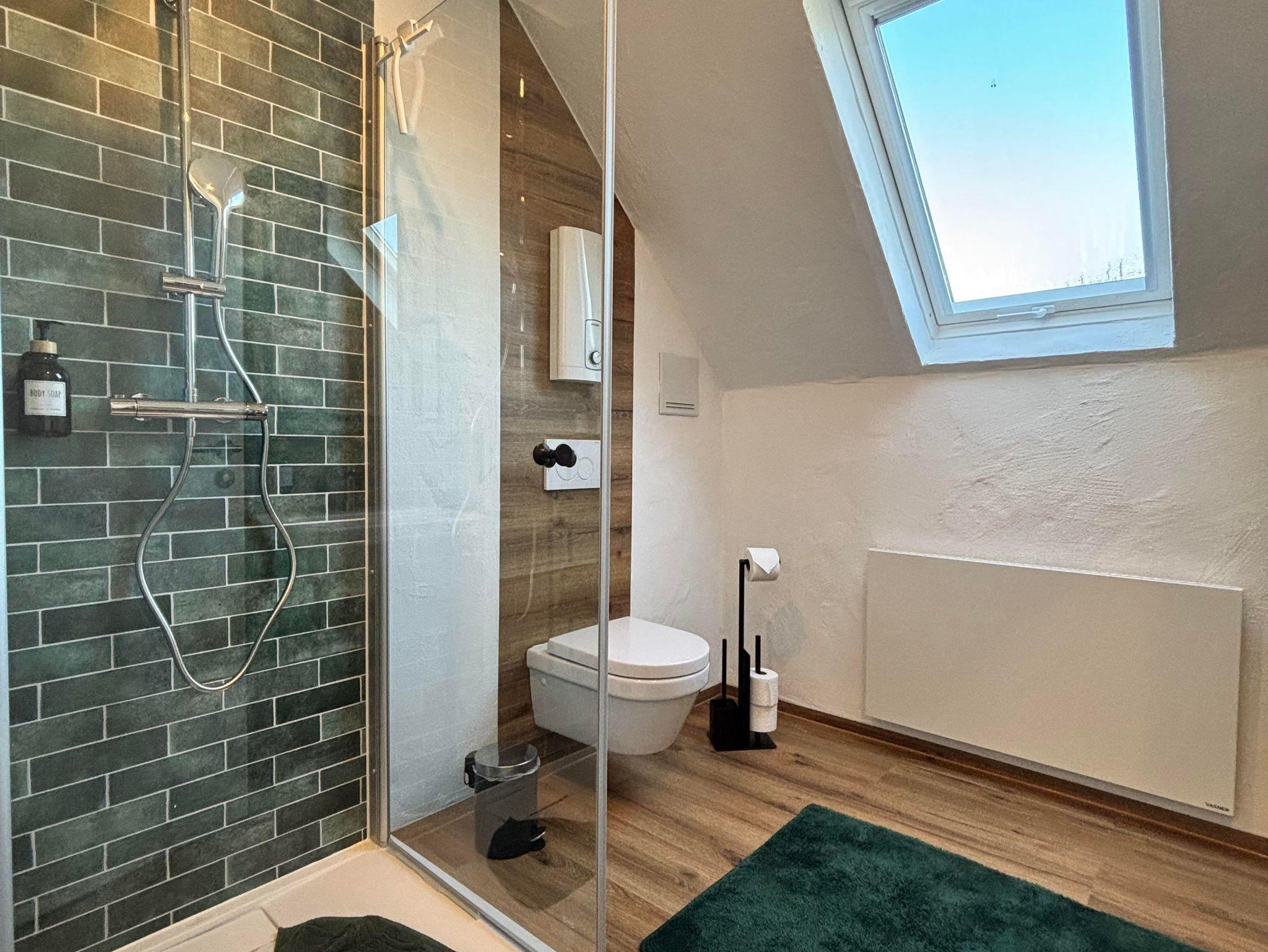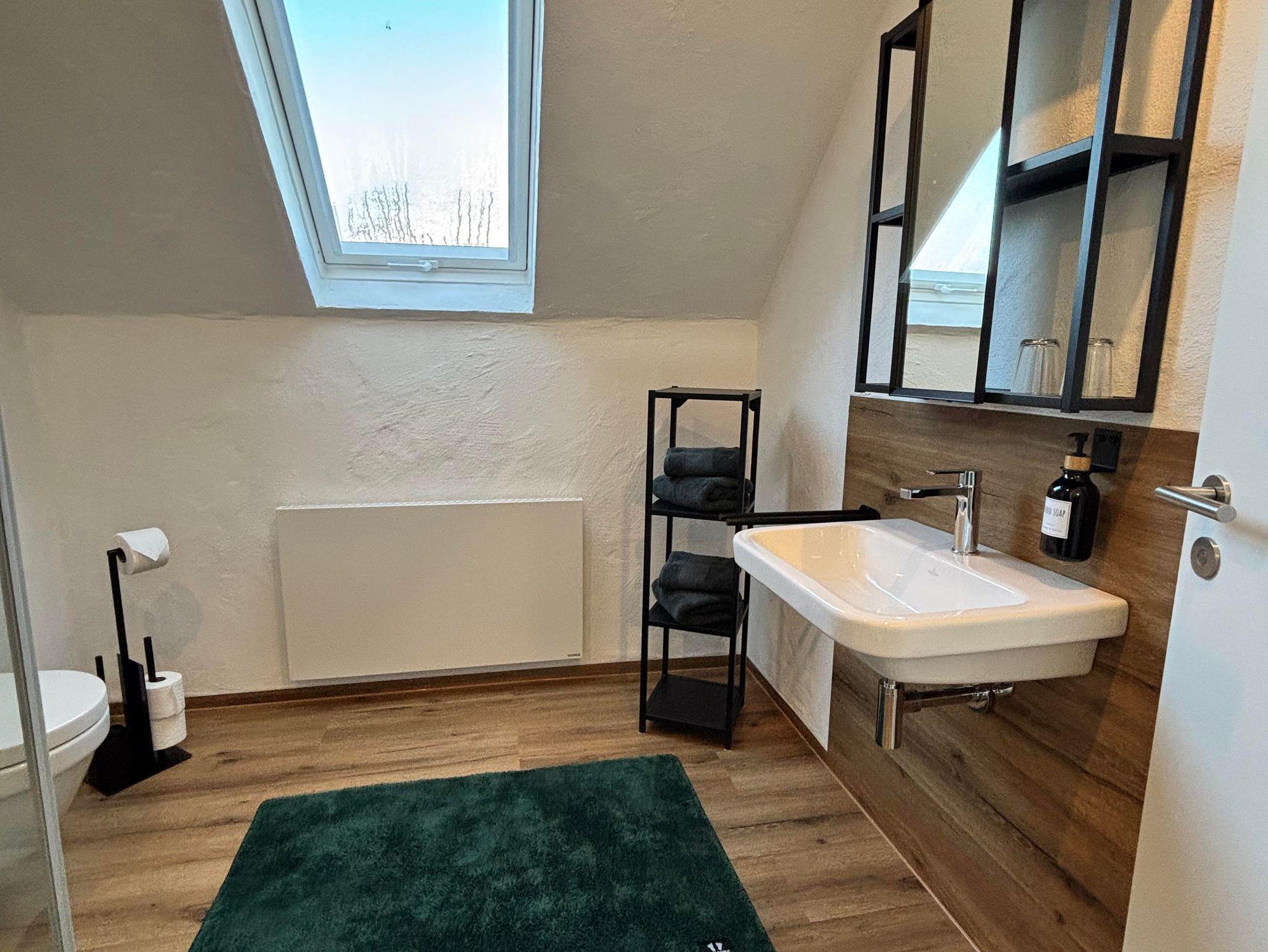 Willkommen im „Big Harmony Room“ – Ihrem privaten Rückzugsort voller Stil, Komfort und zeitloser Eleganz. Auf 16 wohlfühl Quadratmetern im Obergeschoss unserer Pension erwartet Sie ein großzügiges Boxspringbett (2 x 2 Meter), das zum Entspannen und Träumen einlädt; modernste Ausstattung mit Smart-TV sowie ein elegantes Bad mit Dusche und WC. Der Blick aus dem Fenster eröffnet jedem Gast eine ganz eigene, malerische Perspektive auf die umgebende Natur.