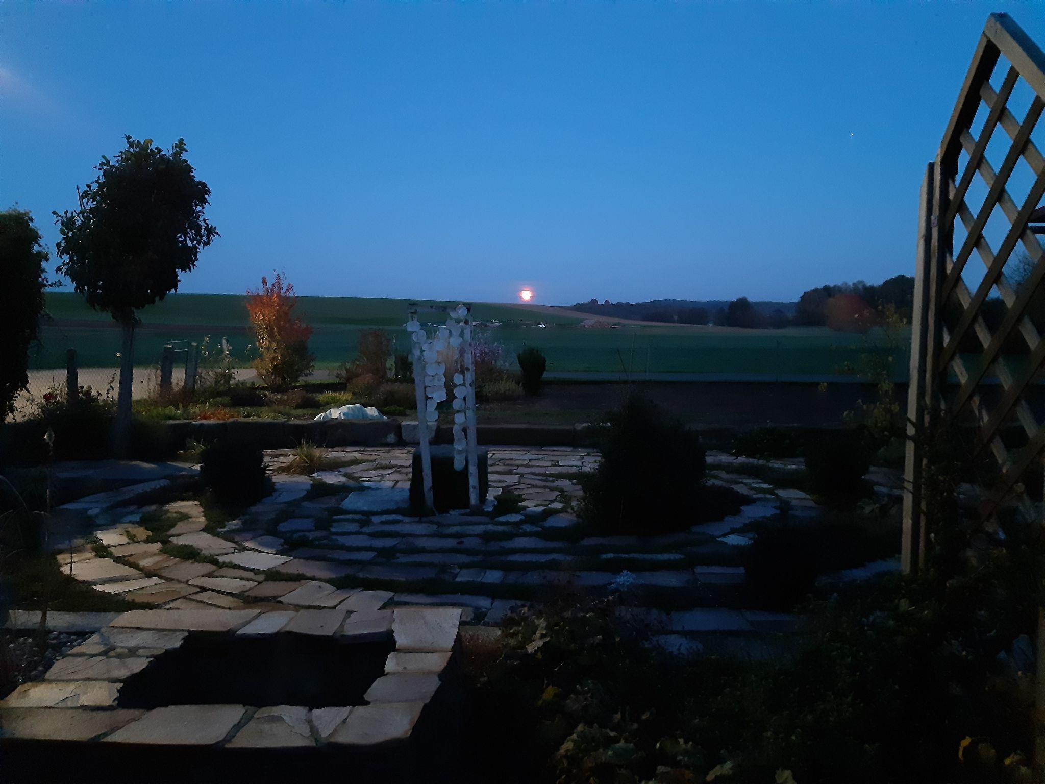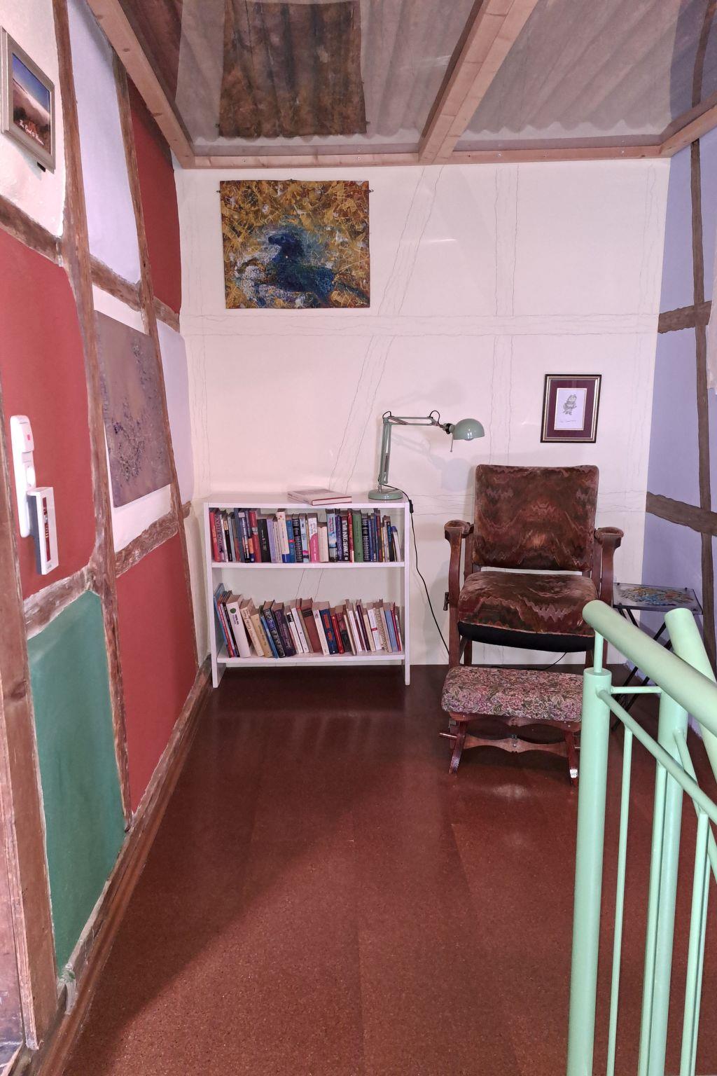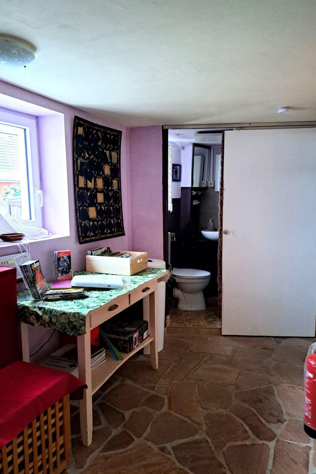 Here you have the cool magic of your own natural pool as a Kneipp facility, children's pool and a place to linger by and in the water. The Kimmelsbacher Hof holiday home in the Haßberge Nature Park is self-catering, has 4-DTV stars and is simply special. It offers the highest level of comfort - the kitchen in particular is well equipped - and is at the same time unusual, fairytale-like and full of surprises, discoveries and magic. The property is located on the outskirts of the village, surrounded by geomantic power places, nature reserves, but also historical castles and farmland from which our food comes. You have two terraces, a Kneipp garden, sauna, plunge, arm and treading pools to yourself, as well as shared use of the prayer labyrinth. From the property and from many windows you can see fields and forests. In the house you can see a varied selection of paintings and works of art and the rustic architecture of the old and ecologically top renovated house. At any time of the year and in any weather, the house is well heated by infrared ceiling heating, a cosy place to stay. The lovely area is full of fantastic hiking and cycling trails, as well as all kinds of excursion destinations. With its central location in Germany, it is an ideal place to stay for people who like each other.