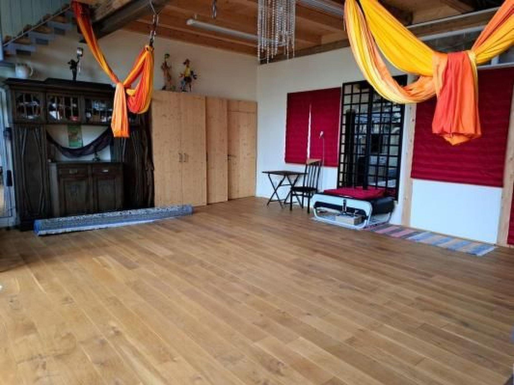 The former barn is the centrepiece of Kimmelsbacher Hof. As an Argentinian tango dancer and yoga enthusiast, the oak sprung floor fulfils my dream. In small groups of 5 to 6 people, the 48 square metre room is ideal for practising yoga, dancing or preparing a performance. The two areal yoga cloths can be tied up or used in your own practice. The Ceragem massage table has a healing effect on the whole body. Exercise balls, a hula hoop and other exercise accessories are available. You bring your own music and other equipment.