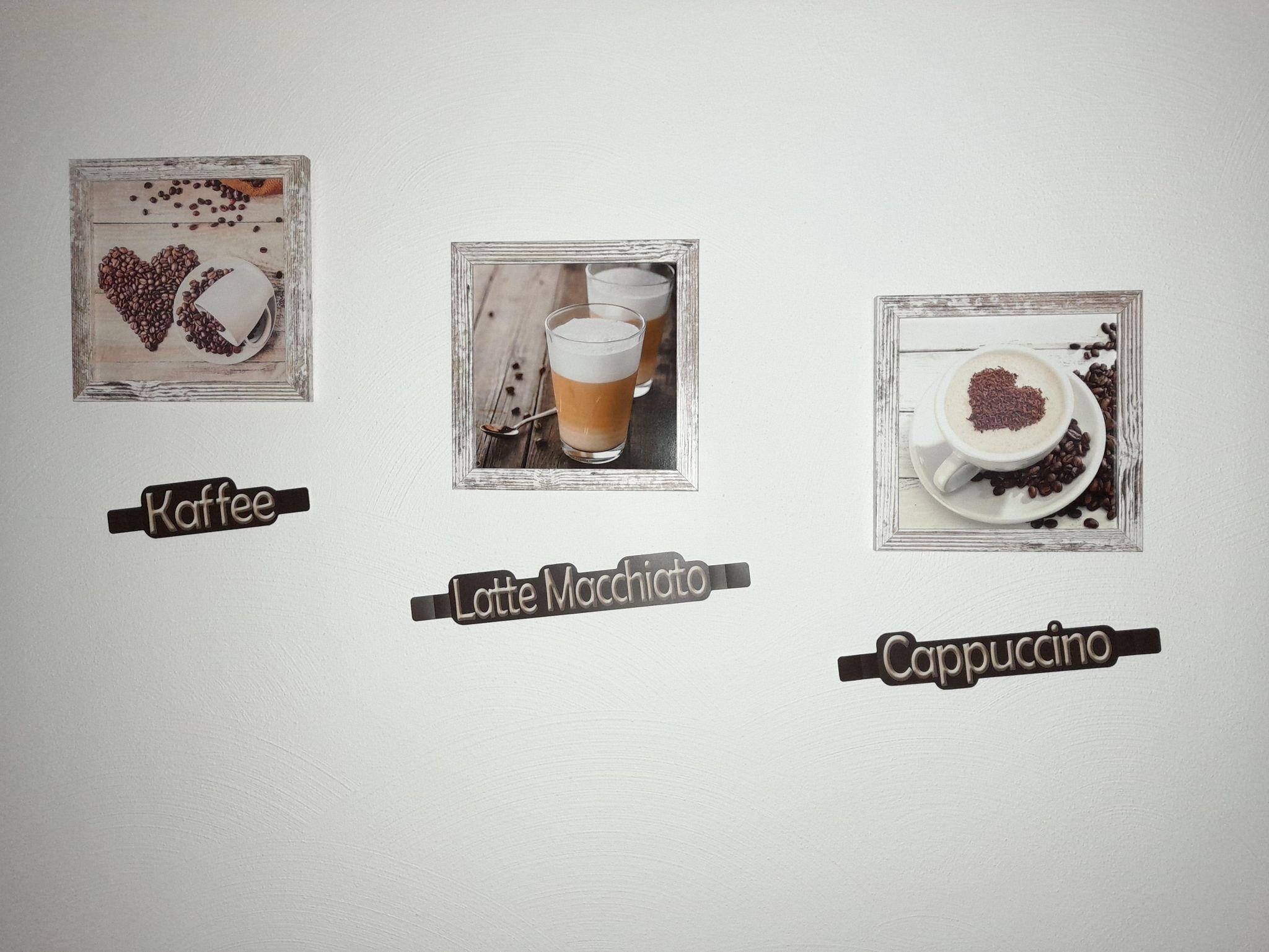 Küche mit Kühlschrank, Herd+Kochfeld, Senseo Kaffeepadmaschine, Mikrowelle, Toaster und Eierkocher.