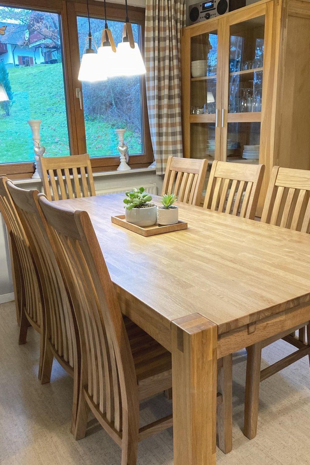 Inside, a warm and cosy atmosphere awaits you, complemented by modern and comprehensive furnishings. The furnishings include a living room with TV, a dining area and a large dining table for communal meals. The rooms are divided into various bedrooms, equipped with comfortable beds, some with balcony access, wardrobes and even washbasins for a touch of luxury. The interior is complemented by two bathrooms with underfloor heating and a well-equipped kitchen.