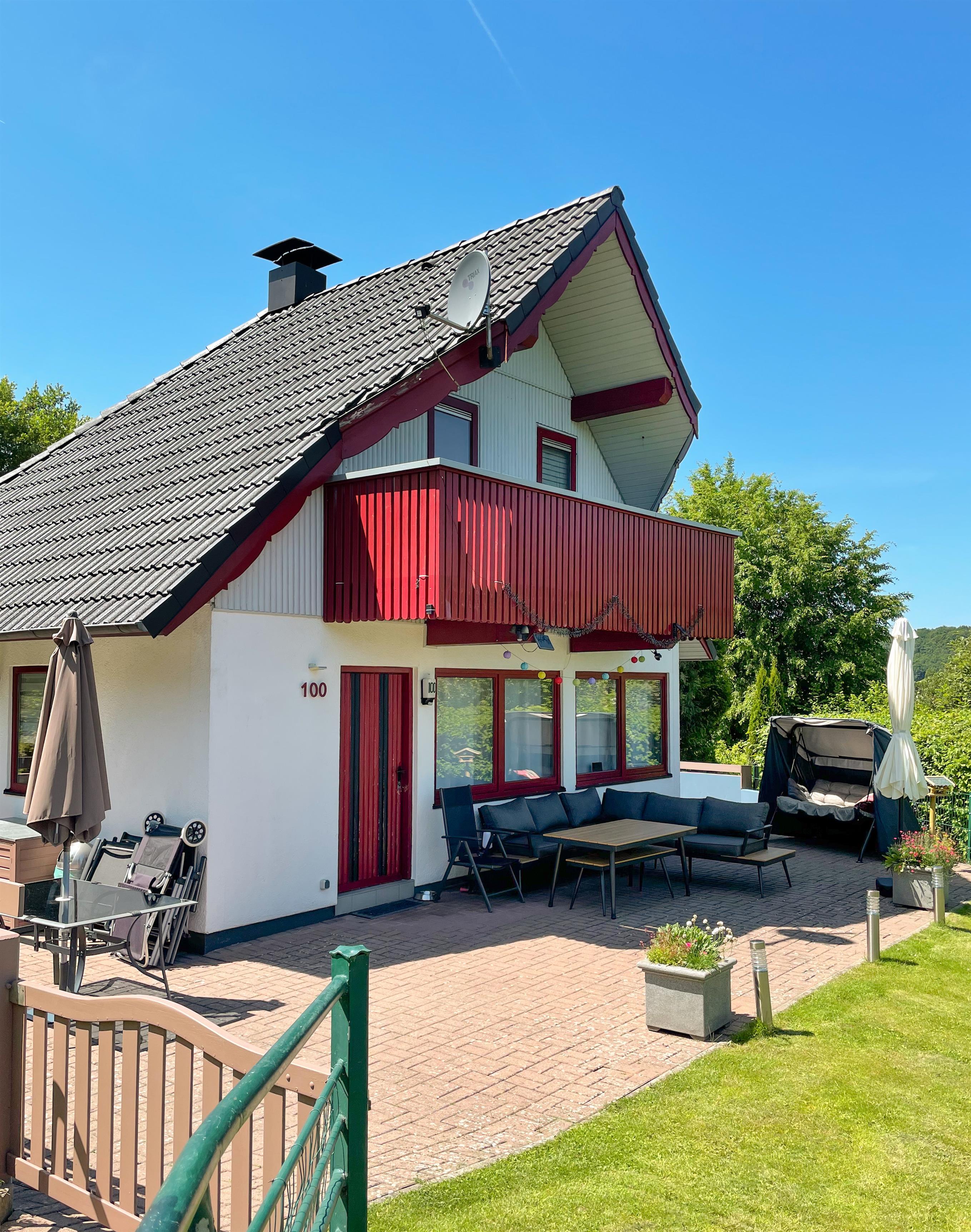 Das Ferienhaus liegt in einem gepflegten Ferienhauspark im Nordhessischen Bergland. Mit seinem fast blickdichten Grundstück, liegt das Haus auf Seeseite. Von hier sind es nur ca. 600 m. bis zum Badestrand.