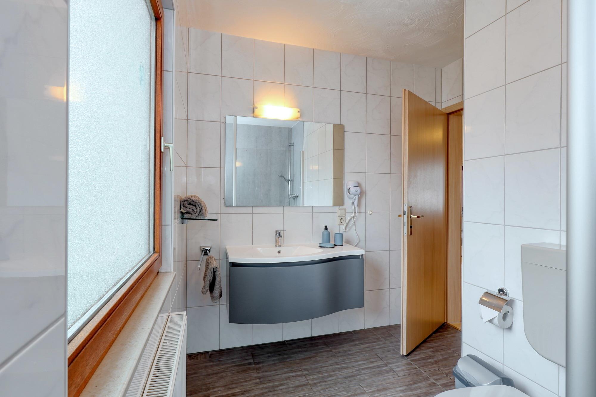 Von dem Balkon aus können Sie die Aussicht in den Wald und die Landschaft vom Hessischen Bergland genießen.