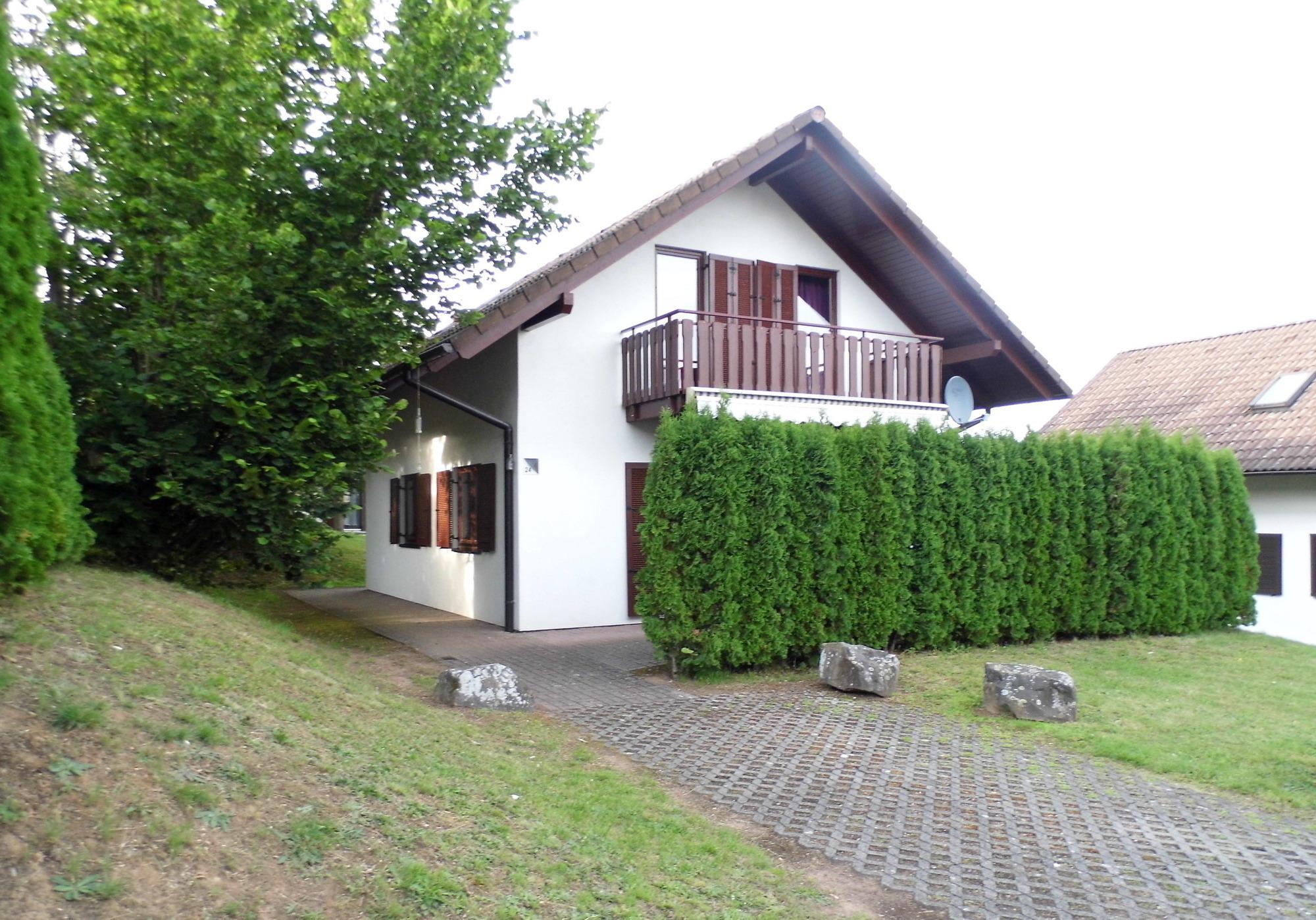 Von dem Balkon aus können Sie die Aussicht in den Wald und die Landschaft vom Hessischen Bergland genießen.