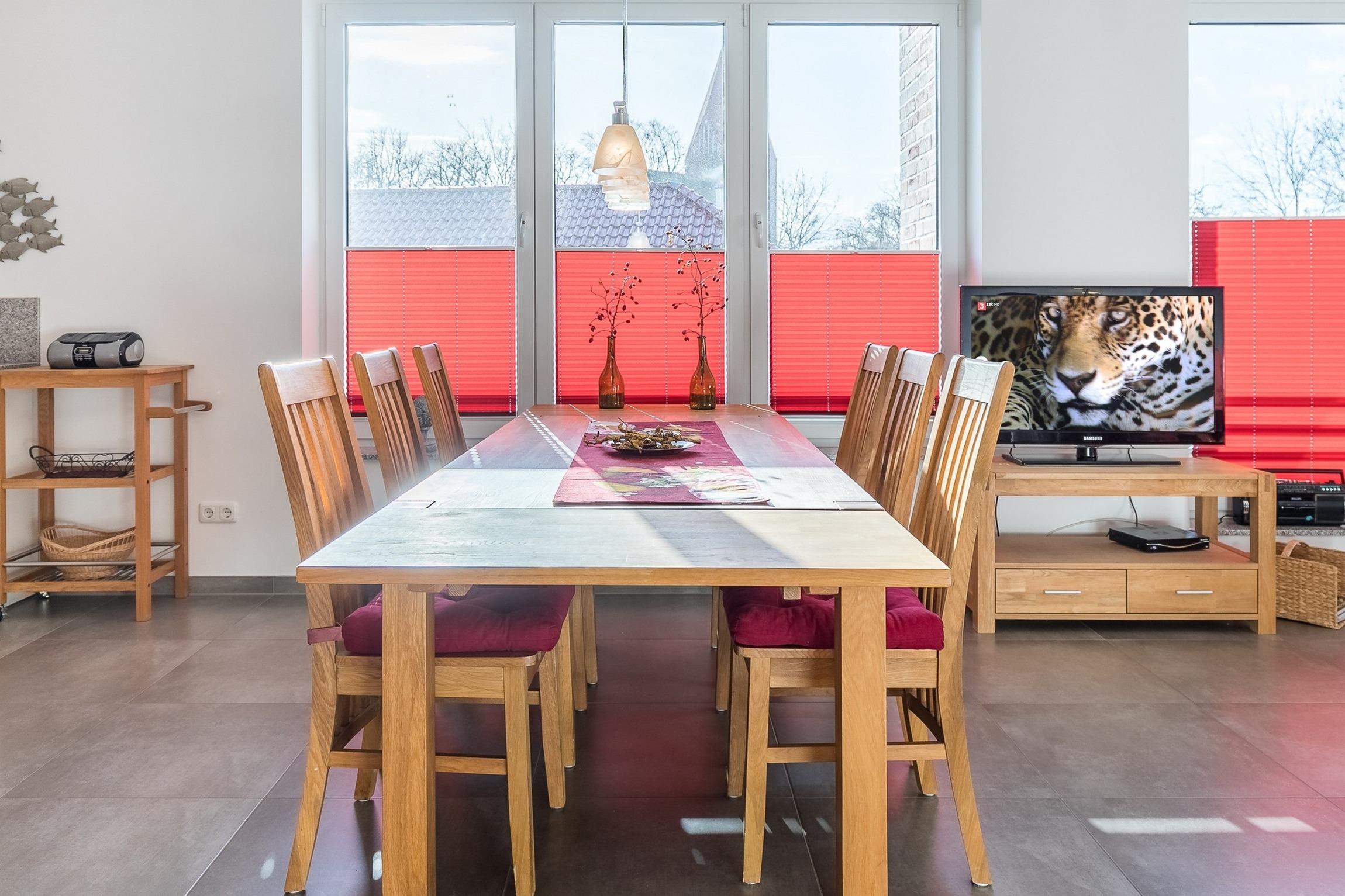 Das Besondere an dieser Nichtraucher-Ferienwohnung ist der große Ess-, Koch- und Wohnraum, der viel Platz für gemeinsame Indoor-Aktivitäten bietet. Die Schlafzimmer lassen sich schön abdunkeln. Für unsere kleinsten Gäste stehen ein Reisebettchen und ein Hochstuhl kostenlos in der Wohnung bereit.