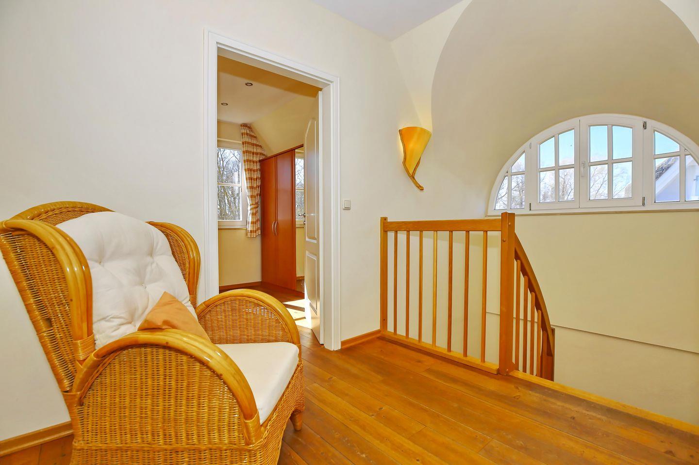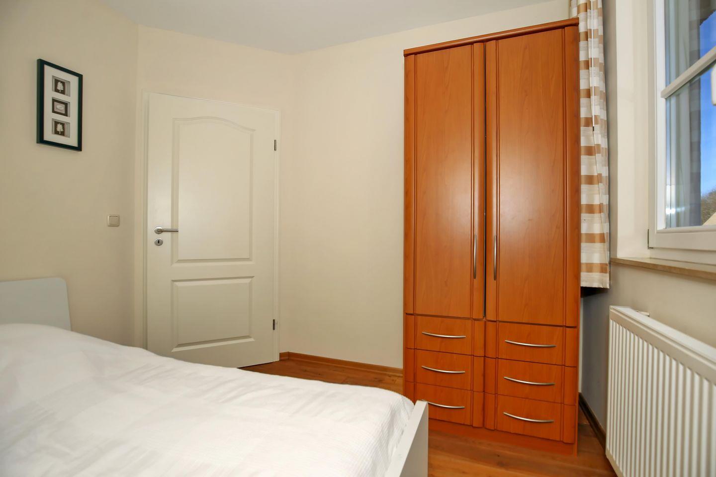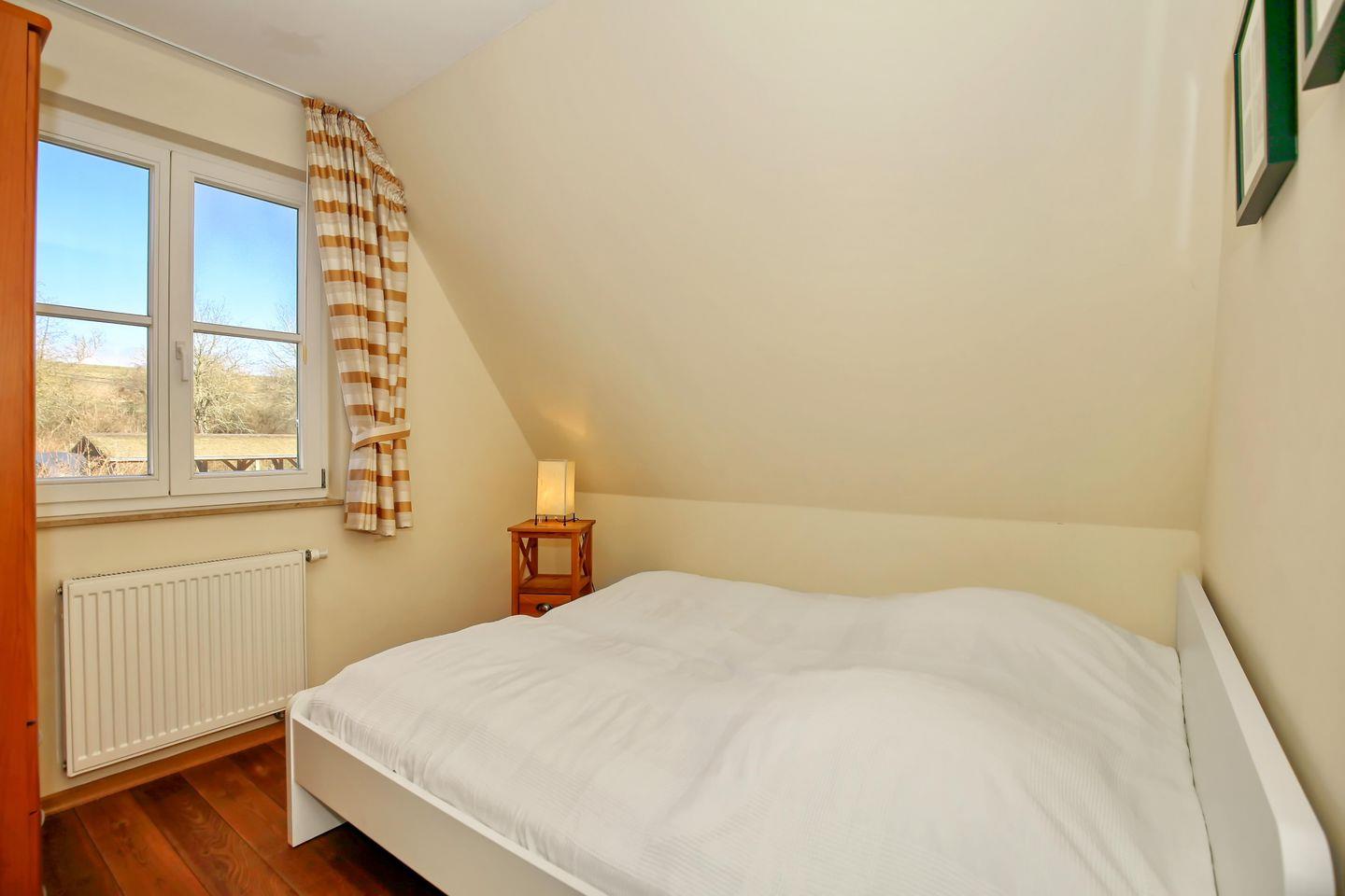 In der oberen Etage befinden sich drei Schlafzimmer. Das erste Schlafzimmer ist mit einem bequemen Doppelbett (2 x 90 x 200 cm) und einem großen Kleiderschrank eingerichtet. Im zweiten Schlafzimmer erwartet dich ein Doppelbett (2 x 80 x 200 cm) zur Nachtruhe. Für dein Urlaubsgepäck ist auch hier ein Kleiderschrank vorhanden. Die ausziehbare Schlafcouch (170 x 200 cm) im dritten Schlafzimmer bietet 2 weiteren Personen einen Schlafplatz. Ein Kleiderschrank dient als Stauraum für deine Kleidung. Zum Verdunkeln kannst du in allen Schlafzimmern Vorhänge nutzen.