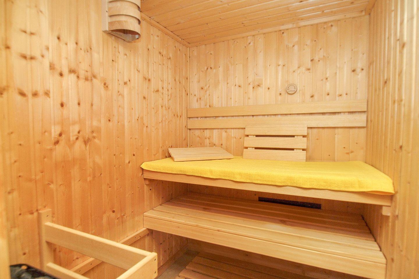 Besondere Erholung bietet die hauseigene Sauna im Erdgeschoss des Ferienhauses (5,00 € für 2 Stunden Laufzeit). Eine Dusche sorgt für Erfrischung. Das Gäste-WC befindet sich neben dem Saunabereich.