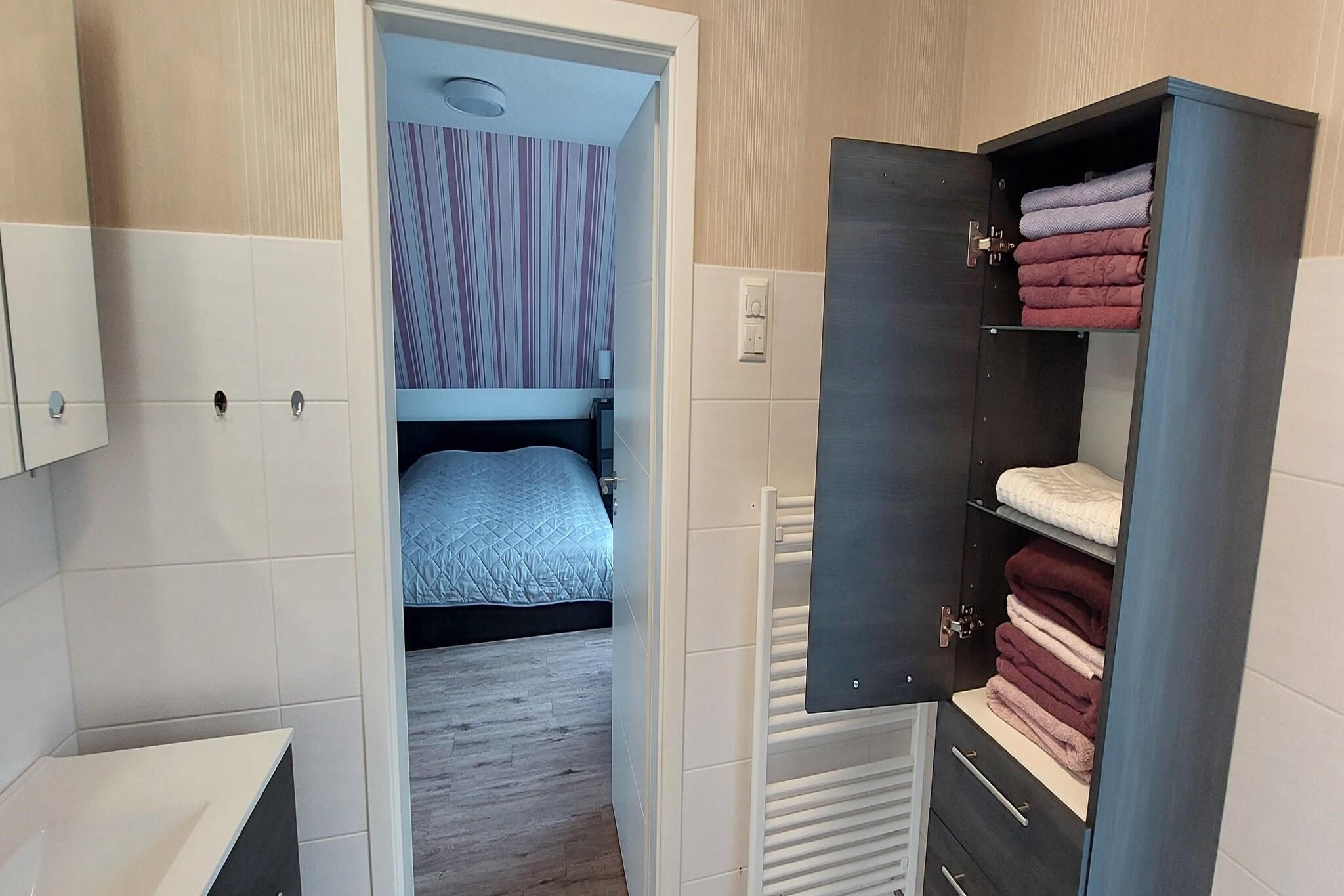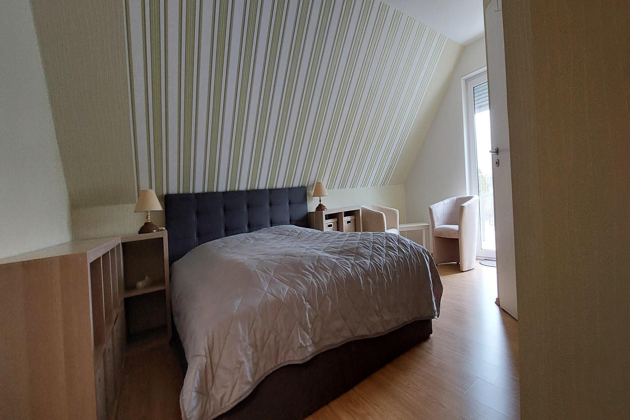 Moderne ferielejlighed på øverste etage i et tofamiliehus i udkanten af natur- og ferieparken i Klein Labenz med en fantastisk udsigt over Groß Labenz-søen fra stuen og balkonterrassen. Slap af midt i naturparken Sternberger Seenlandschaft og nyd den storslåede udsigt over det rolige landskab. Groß Labenz-søen er omgivet af store skove og er på grund af sin overflod af fisk et fremragende rejsemål for lystfiskere. Robåde kan lejes, afhængigt af tilgængelighed. Inkluderede højdepunkter: Wi-Fi (begrænset ydelse), slutrengøring, parkering, alle forsyningsomkostninger, robåd (hvis vejret tillader det, 1. juni - 4. september). Aktiviteter i nærheden: Naturparken Sternberger Seenlandschaft, Warnow-floden, Groß Labenz-søen og de mange skove og enge er ideelle udgangspunkter for vandreture, cykling og forskellige vandsportsgrene. Takket være den centrale beliggenhed i hjertet af Mecklenburg kan både Østersøen og byerne Schwerin og Wismar nås på 20 minutter. Rostock ligger mindre end 45 minutter væk, og det er endda nemt at tage på dagsture til Lübeck, Hamborg eller Berlin. Bemærk: Linnedpakken kan bookes valgfrit for EURO35 op til 3 dage før ankomst og er ikke inkluderet i lejeprisen!
