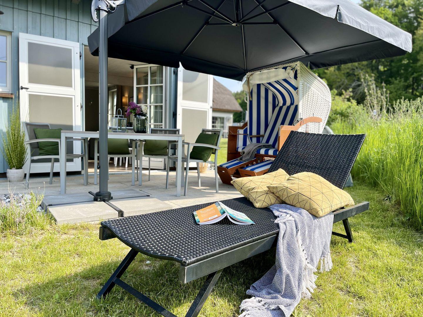 2021 neu gebaut, modern, exklusiv – das beschreibt die Ferienhaushälfte „Strandflieder“ im Feriendorf Klein Stresow. Außergewöhnlich und ausgewählt eingerichtet und mit allem Wohnkomfort ausgestattet, den man sich für eine entspannte, naturnahe Urlaubsauszeit nur wünschen kann. Der Greifswalder Bodden befindet sich in unmittelbarer Nähe. Die beste Untermalung für ein relaxtes Abschalten. Das stilvolle Äußere des Hauses, das sich angenehm in die benachbarten Ferienhäuser einpasst, ist nach jeder Rückkehr von einer tollen Kajak- oder SUP-Tour oder einer entspannten Radtour erneut ein traumhafter Anblick.