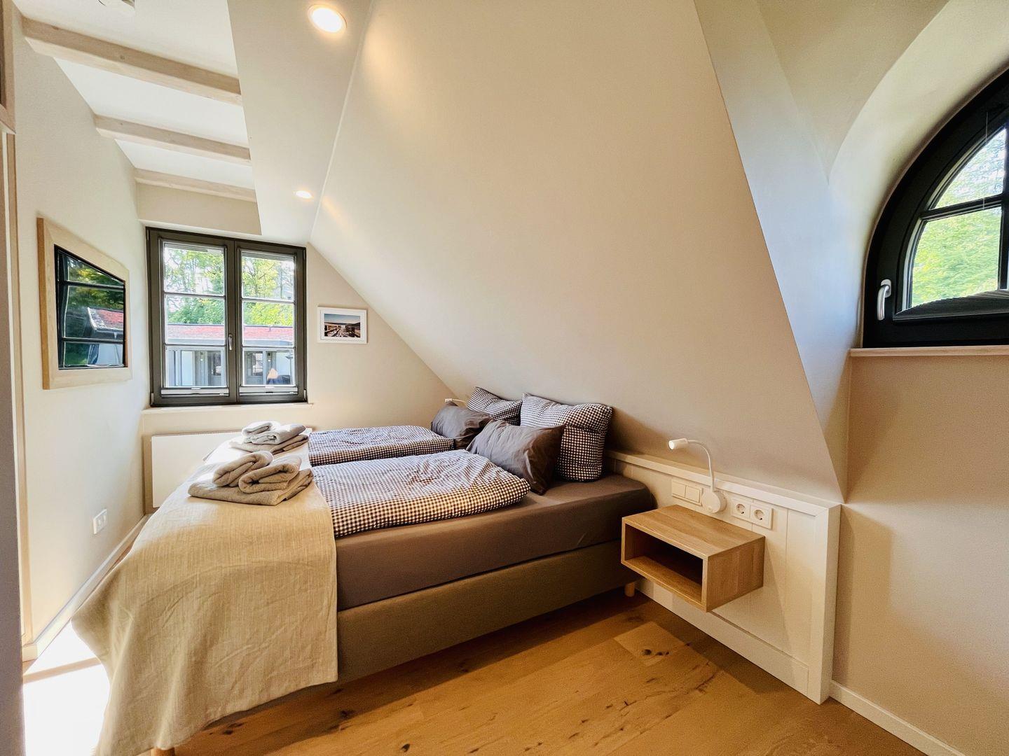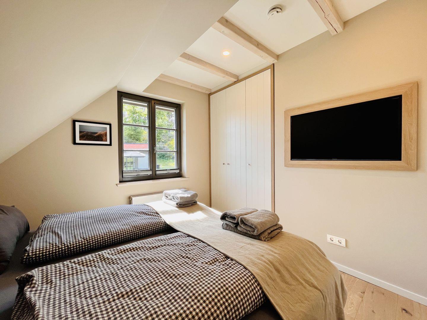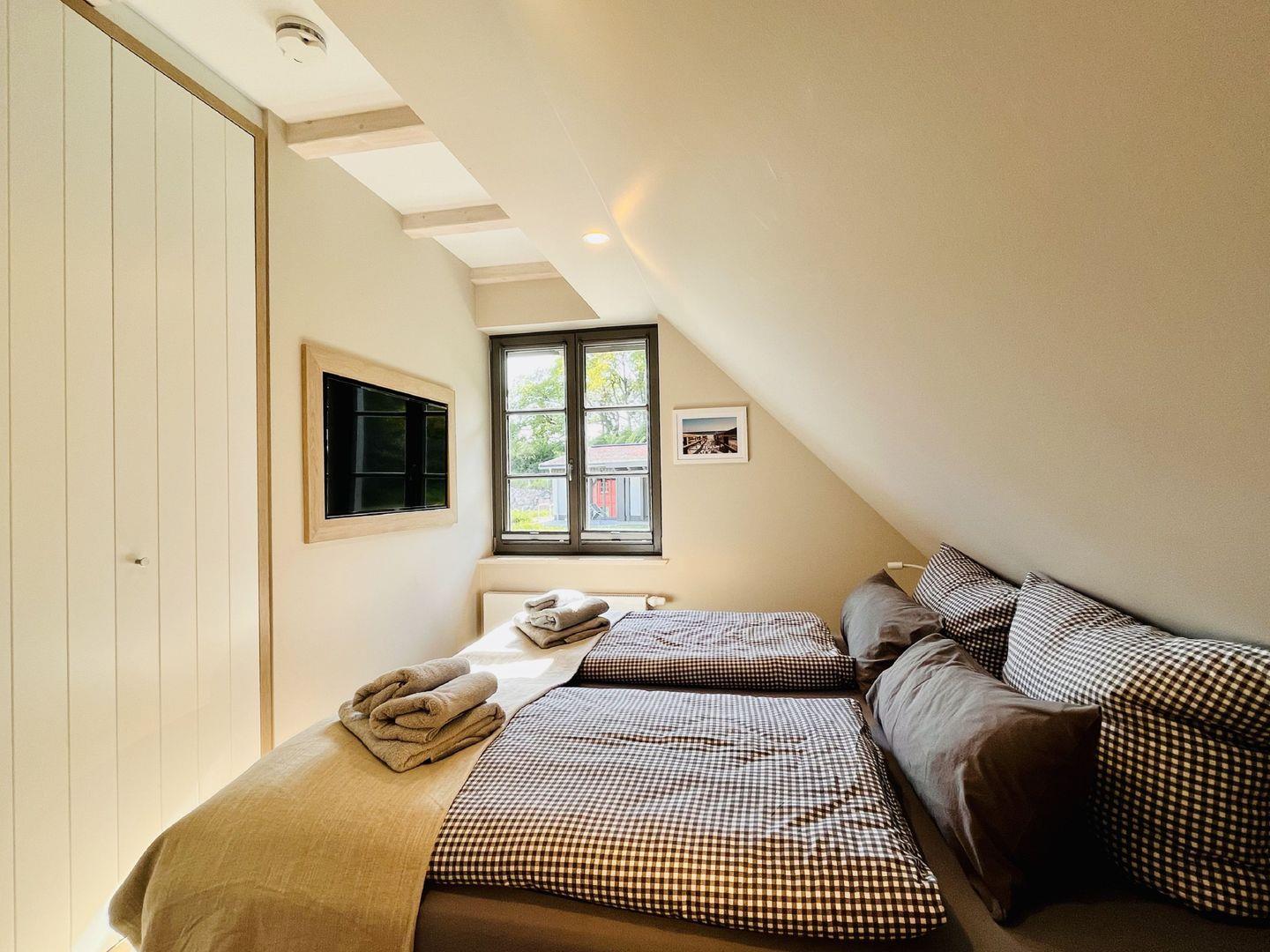 Zubereiten können Sie sie in der offenen und modernen Küche. Alle Geräte sind hochwertig. Ein komplettes Geschirr-Service befindet sich in den Schränken. Abwaschen muss hier zum Glück niemand. Es gibt einen Geschirrspüler. Weiter geht’s mit den beiden komfortablen Schlafzimmern. Zwei bequeme Boxspringdoppelbetten (180 x 200) versprechen erholsame Träume. Die Zimmer verfügen über je einen Kleiderschrank und ebenfalls einen Flat-TV. Zwei Bäder mit Dusche und WC sorgen für genügend Raum zum Frischmachen. Das Bad im EG ist zudem mit einer Finnischen Sauna ausgestattet. Bei Anreise liegen Handtücher für Sie bereit und die Betten sind bezogen.