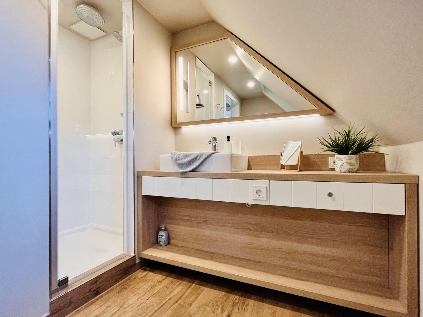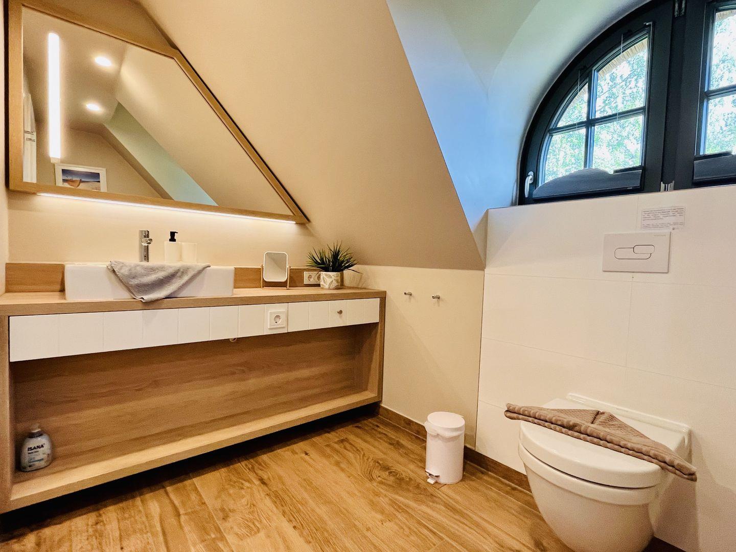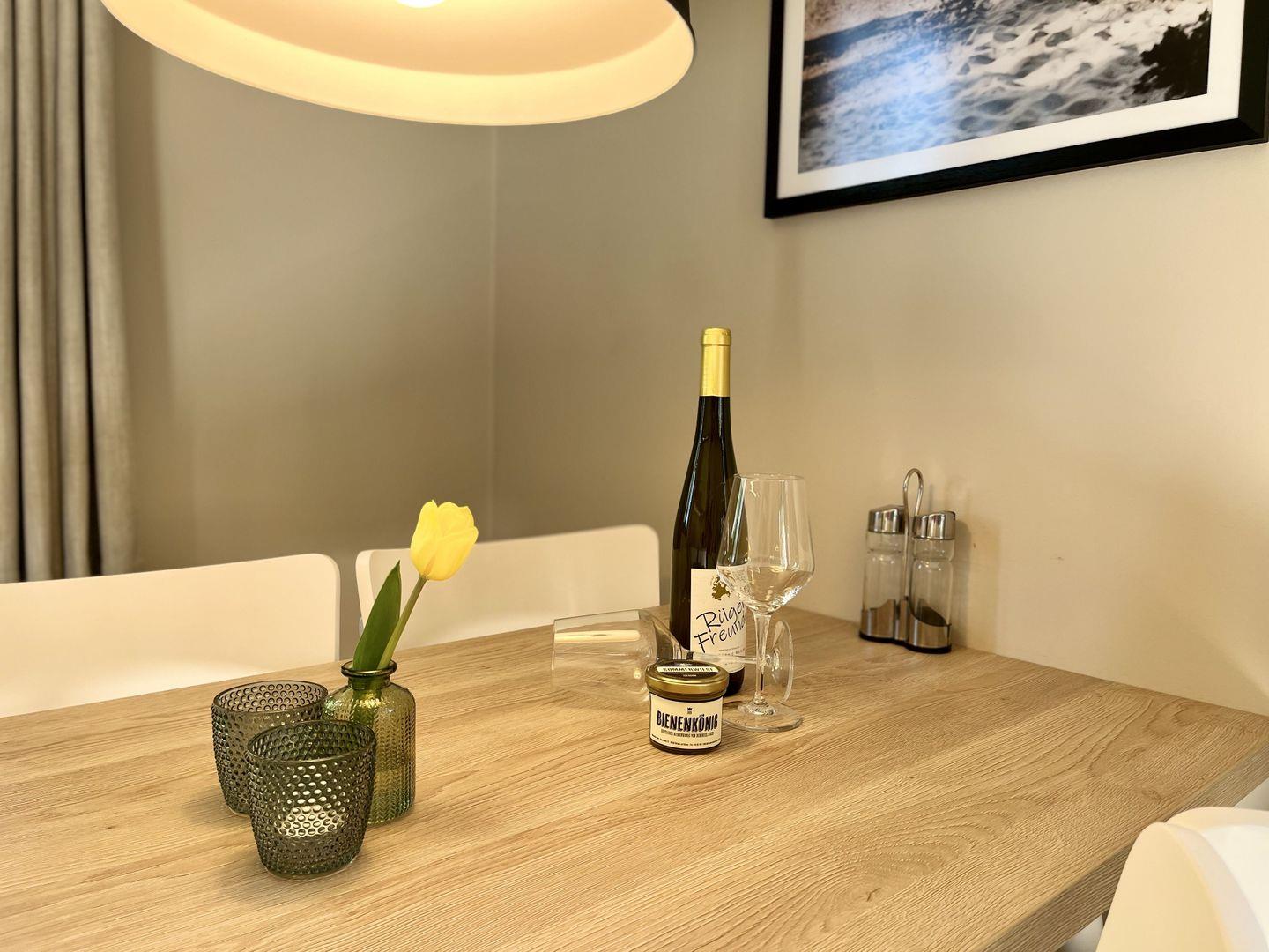 Zubereiten können Sie sie in der offenen und modernen Küche. Alle Geräte sind hochwertig. Ein komplettes Geschirr-Service befindet sich in den Schränken. Abwaschen muss hier zum Glück niemand. Es gibt einen Geschirrspüler. Weiter geht’s mit den beiden komfortablen Schlafzimmern. Zwei bequeme Boxspringdoppelbetten (180 x 200) versprechen erholsame Träume. Die Zimmer verfügen über je einen Kleiderschrank und ebenfalls einen Flat-TV. Zwei Bäder mit Dusche und WC sorgen für genügend Raum zum Frischmachen. Das Bad im EG ist zudem mit einer Finnischen Sauna ausgestattet. Bei Anreise liegen Handtücher für Sie bereit und die Betten sind bezogen.