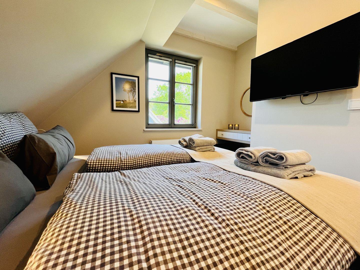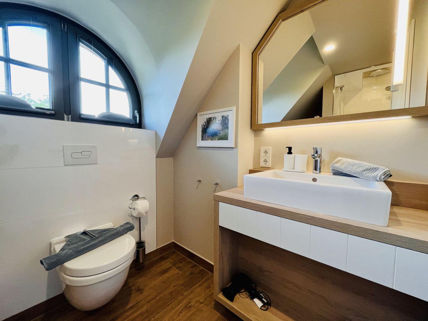 Zubereiten können Sie sie in der offenen und modernen Küche. Alle Geräte sind hochwertig. Ein komplettes Geschirr-Service befindet sich in den Schränken. Abwaschen muss hier zum Glück niemand. Es gibt einen Geschirrspüler. Ein bequemes Boxspringdoppelbett (180 x 200) verspricht erholsame Träume. Die Zimmer verfügen über je einen Kleiderschrank und ebenfalls einen Flat-TV. Ein Bad mit Dusche und WC sorgen für genügend Raum zum Frischmachen. Bei Anreise liegen Handtücher für Sie bereit und die Betten sind bezogen.