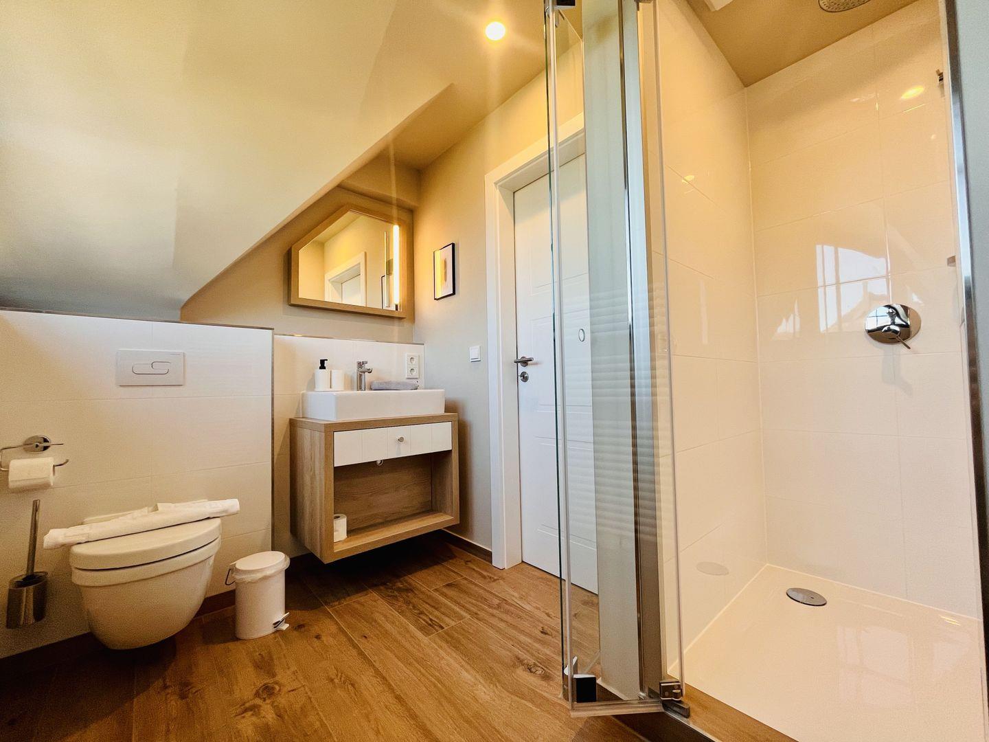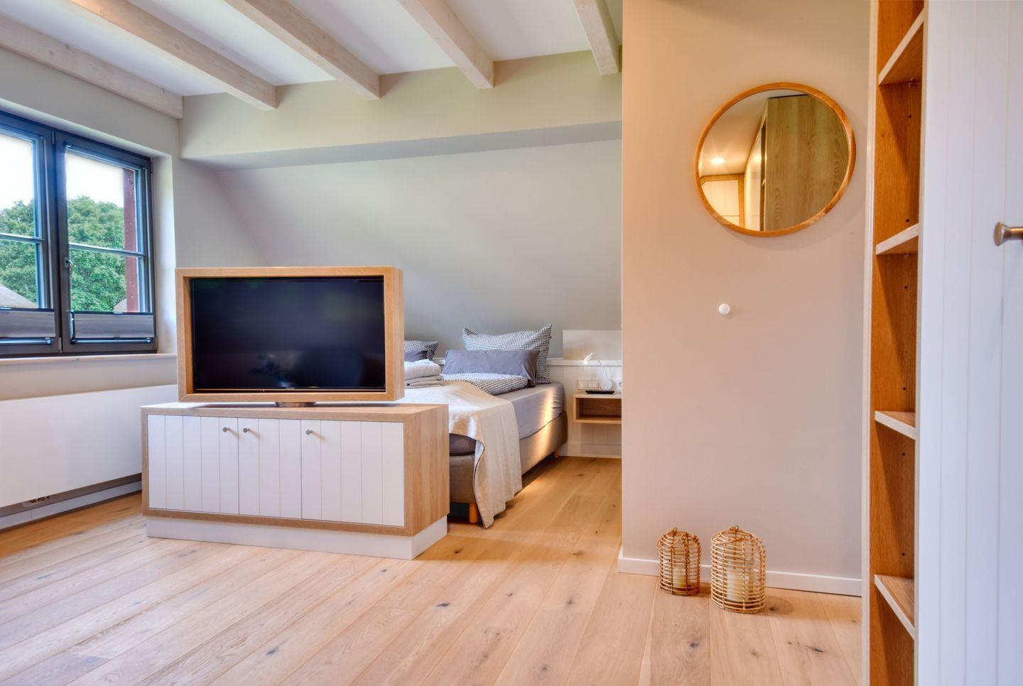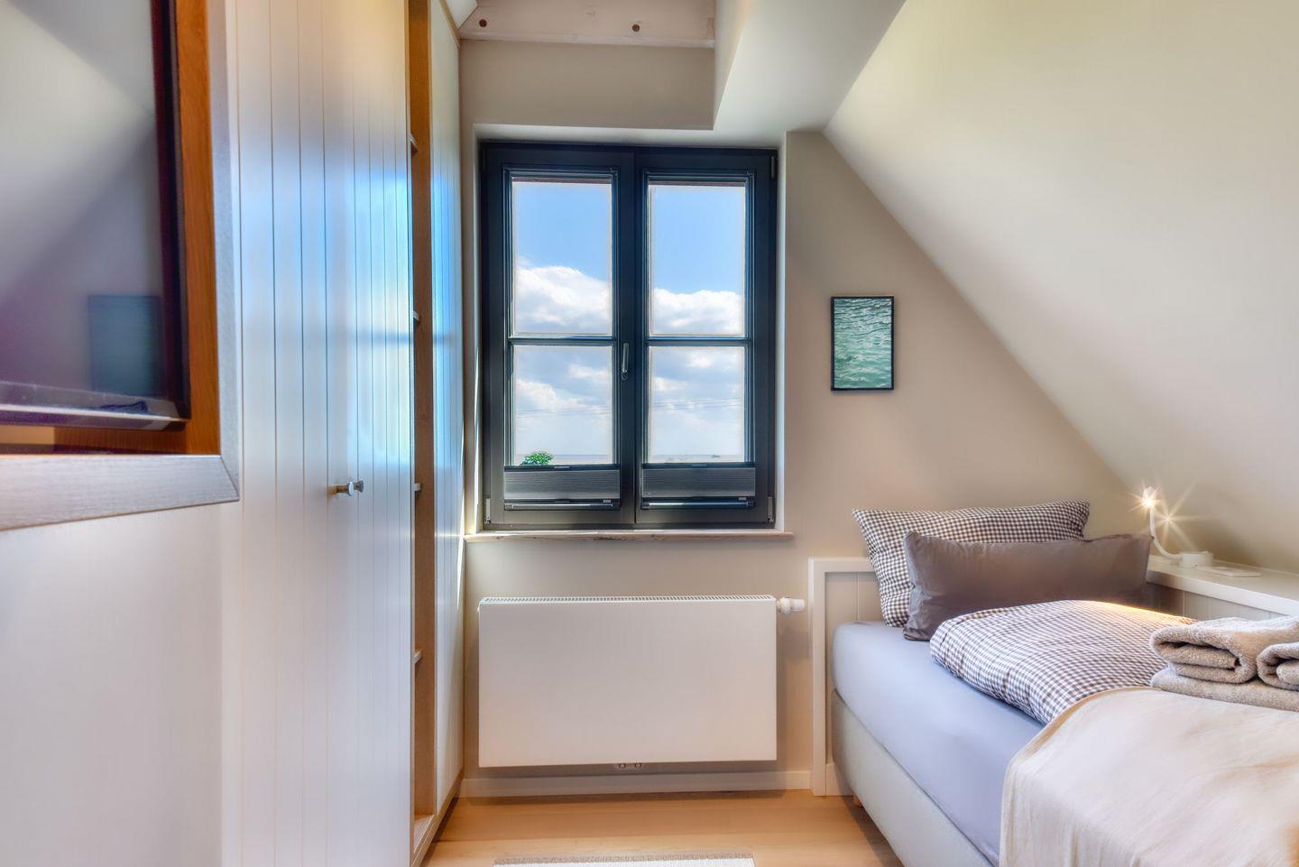 Zubereiten können Sie sie in der offenen und modernen Küche. Alle Geräte sind hochwertig. Ein komplettes Geschirr-Service befindet sich in den Schränken. Abwaschen muss hier zum Glück niemand. Es gibt einen Geschirrspüler. Weiter geht’s mit den beiden komfortablen Schlafzimmern. Zwei bequeme Boxspringdoppelbett (180 x 200) und zwei Boxspringeinzelbetten (90 x 200) versprechen erholsame Träume. Die Zimmer verfügen über je einen Kleiderschrank und ebenfalls einen Flat-TV. Zwei Bäder mit Dusche und WC sorgen für genügend Raum zum Frischmachen. Das Bad im EG ist zudem mit einer Finnischen Sauna ausgestattet. Bei Anreise liegen Handtücher für Sie bereit und die Betten sind bezogen.