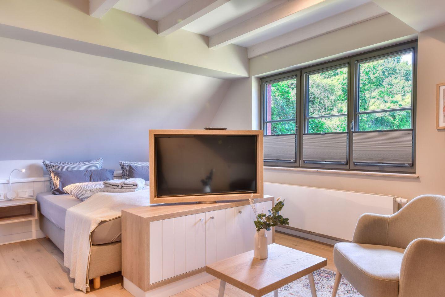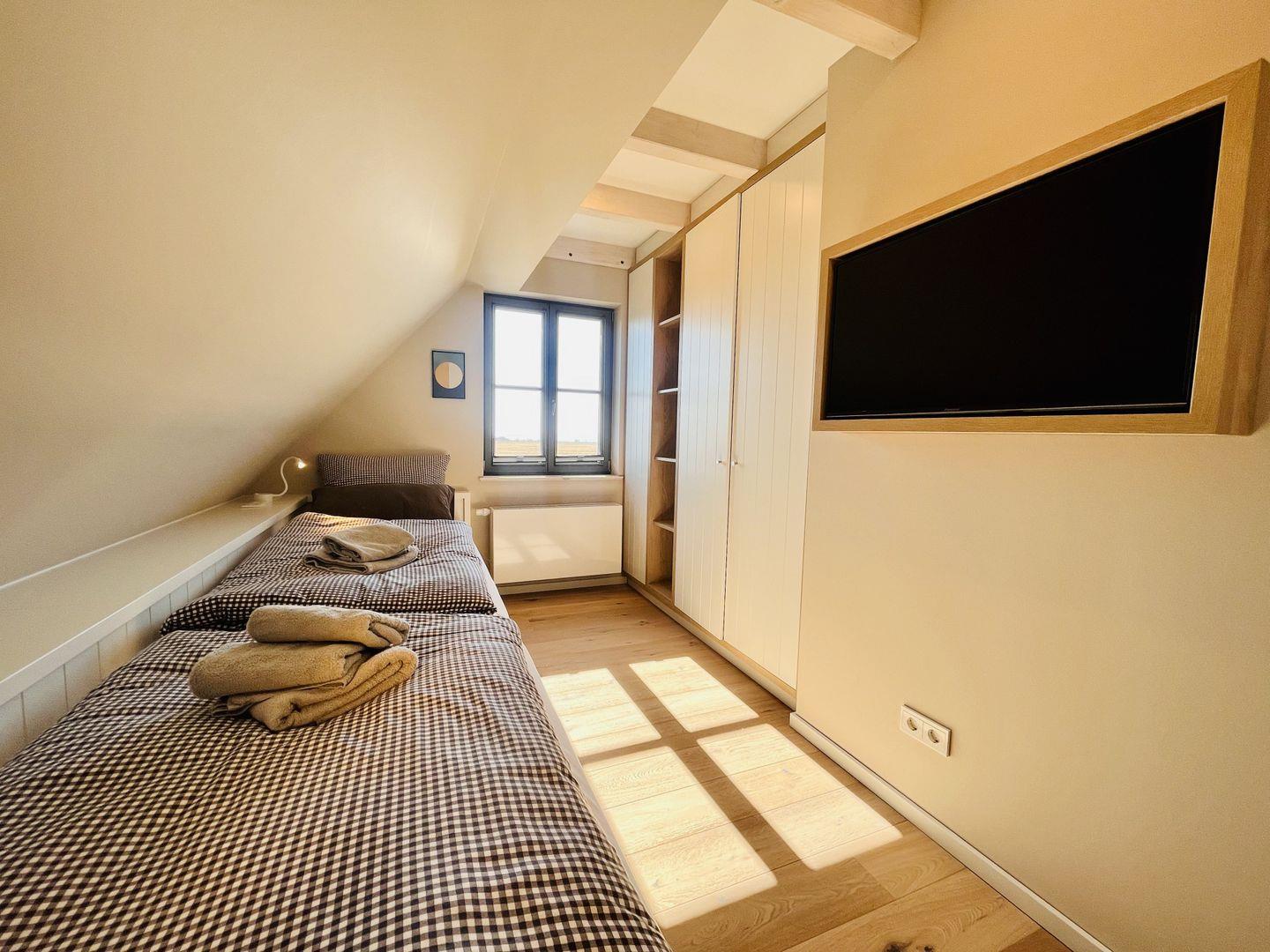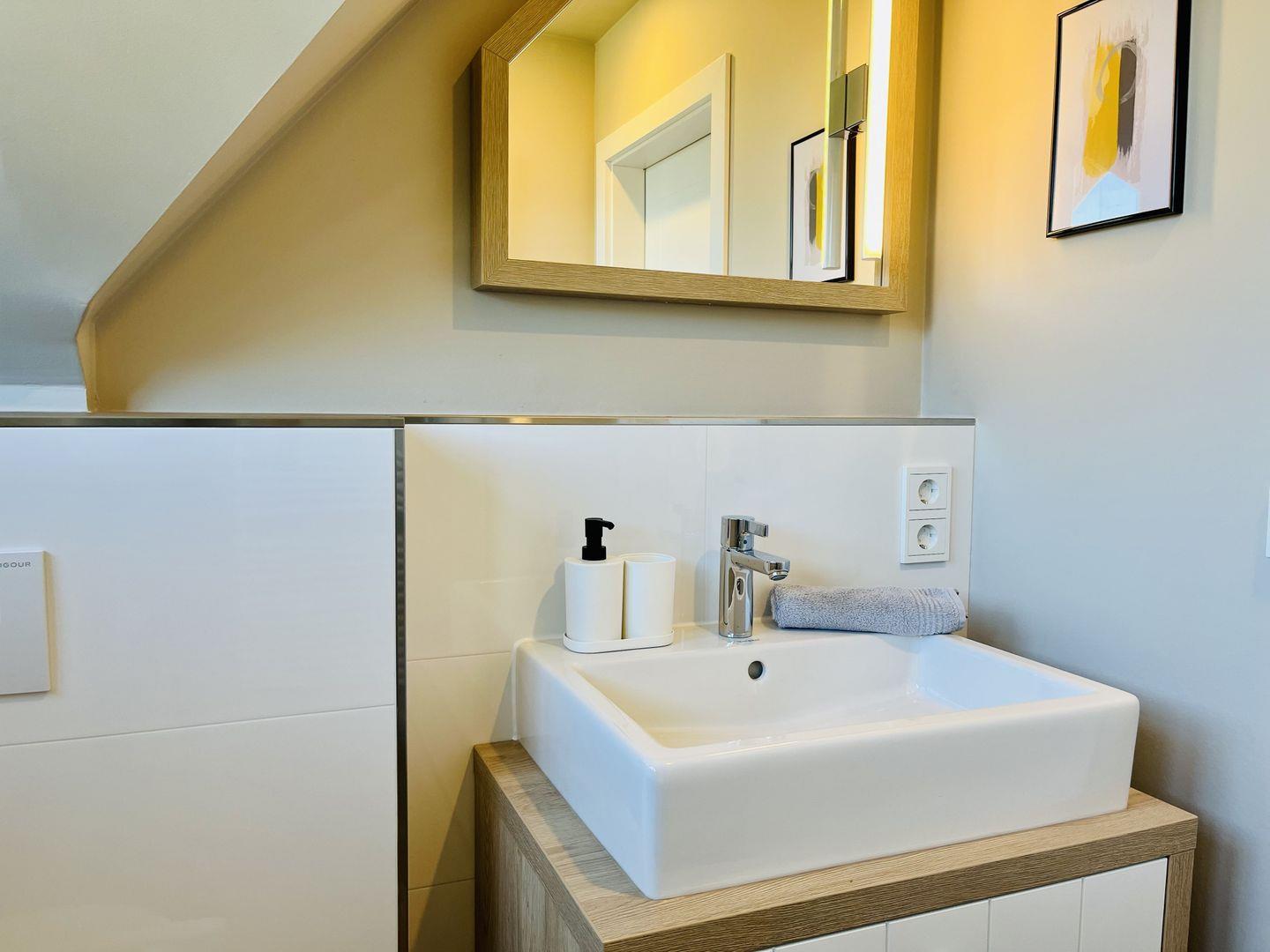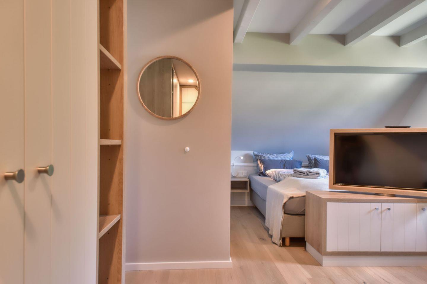 Zubereiten können Sie sie in der offenen und modernen Küche. Alle Geräte sind hochwertig. Ein komplettes Geschirr-Service befindet sich in den Schränken. Abwaschen muss hier zum Glück niemand. Es gibt einen Geschirrspüler. Weiter geht’s mit den beiden komfortablen Schlafzimmern. Zwei bequeme Boxspringdoppelbett (180 x 200) und zwei Boxspringeinzelbetten (90 x 200) versprechen erholsame Träume. Die Zimmer verfügen über je einen Kleiderschrank und ebenfalls einen Flat-TV. Zwei Bäder mit Dusche und WC sorgen für genügend Raum zum Frischmachen. Das Bad im EG ist zudem mit einer Finnischen Sauna ausgestattet. Bei Anreise liegen Handtücher für Sie bereit und die Betten sind bezogen.