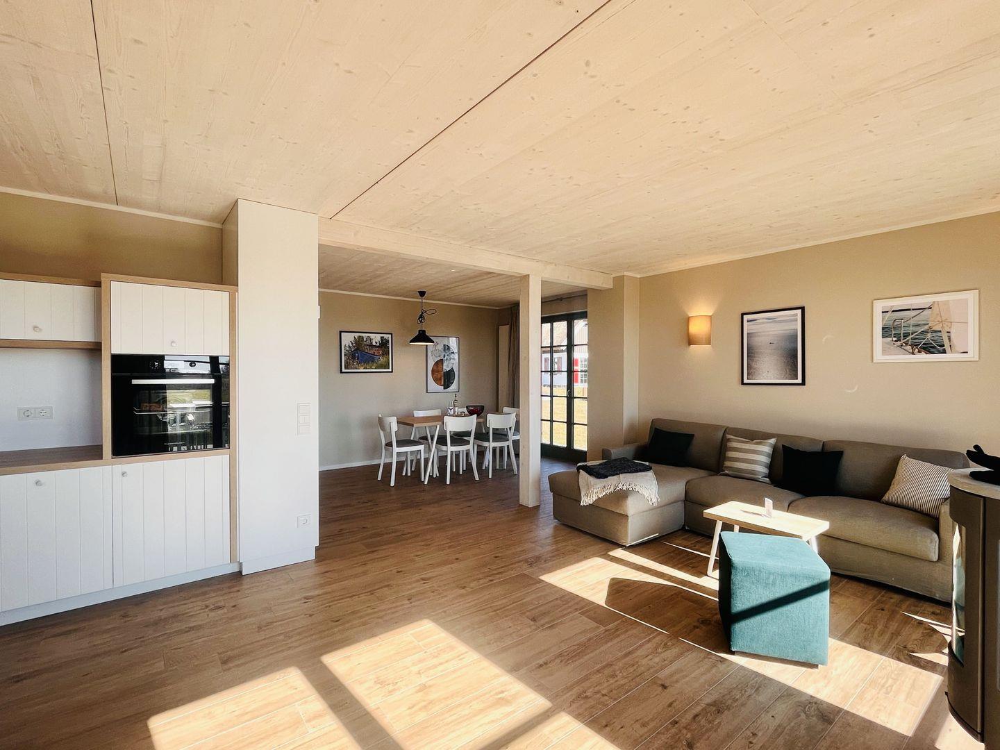2022 neu gebaut, modern, exklusiv – das beschreibt die Ferienhaushälfte „Seeblick“ im Feriendorf Klein Stresow. Außergewöhnlich und ausgewählt eingerichtet und mit allem Wohnkomfort ausgestattet, den man sich für eine entspannte, naturnahe Urlaubsauszeit nur wünschen kann. Der Greifswalder Bodden befindet sich in unmittelbarer Nähe. Die beste Untermalung für ein relaxtes Abschalten. Das stilvolle Äußere des Hauses, das sich angenehm in die benachbarten Ferienhäuser einpasst, ist nach jeder Rückkehr von einer tollen Kajak- oder SUP-Tour oder einer entspannten Radtour erneut ein traumhafter Anblick.