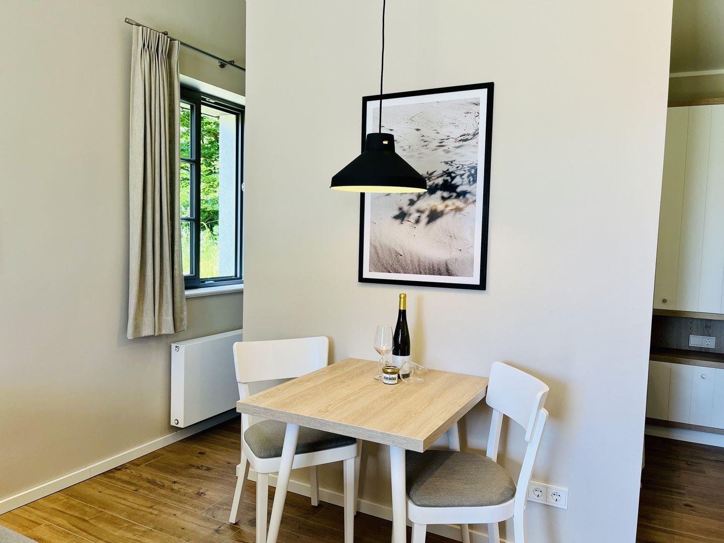 Im Feriendorf Klein Stresow werden Sie auf 41 Quadratmeter in Ihrer eigenen, stylischen Ferienhaushälfte mit Gründach sowie mit Garten und Weitblick begrüßt . Hier beginnt der Urlaub für bis zu 3 Personen schon beim Eintreten. Wenn Sie es genau nehmen, schon beim Ankommen. Das Auto auf dem für Sie reservierten Stellplatz abgestellt, können Sie bei so viel sonniger Leichtigkeit erst einmal richtig durchatmen. Öffnen Sie die bodentiefen Fenster zu Ihrer Süd-Westterrasse und genießen Sie die frische Ostseebrise. Hier lässt es sich ausgezeichnet frühstücken. Das Innere Ihrer Ferienhaushälfte ist bis ins Detail aufs Feinste eingerichtet. Lampen, Möbel und Bilder sind nordisch nobel. Ein Sofa lädt zum Relaxen ein. Zur Ausstattung des Wohn-Esszimmers gehört ein Flat-TV. Das WLAN können Sie kostenfrei nutzen. Ein schöner Esstisch mit zwei Stühlen eignet sich bestens für die Mahlzeiten.