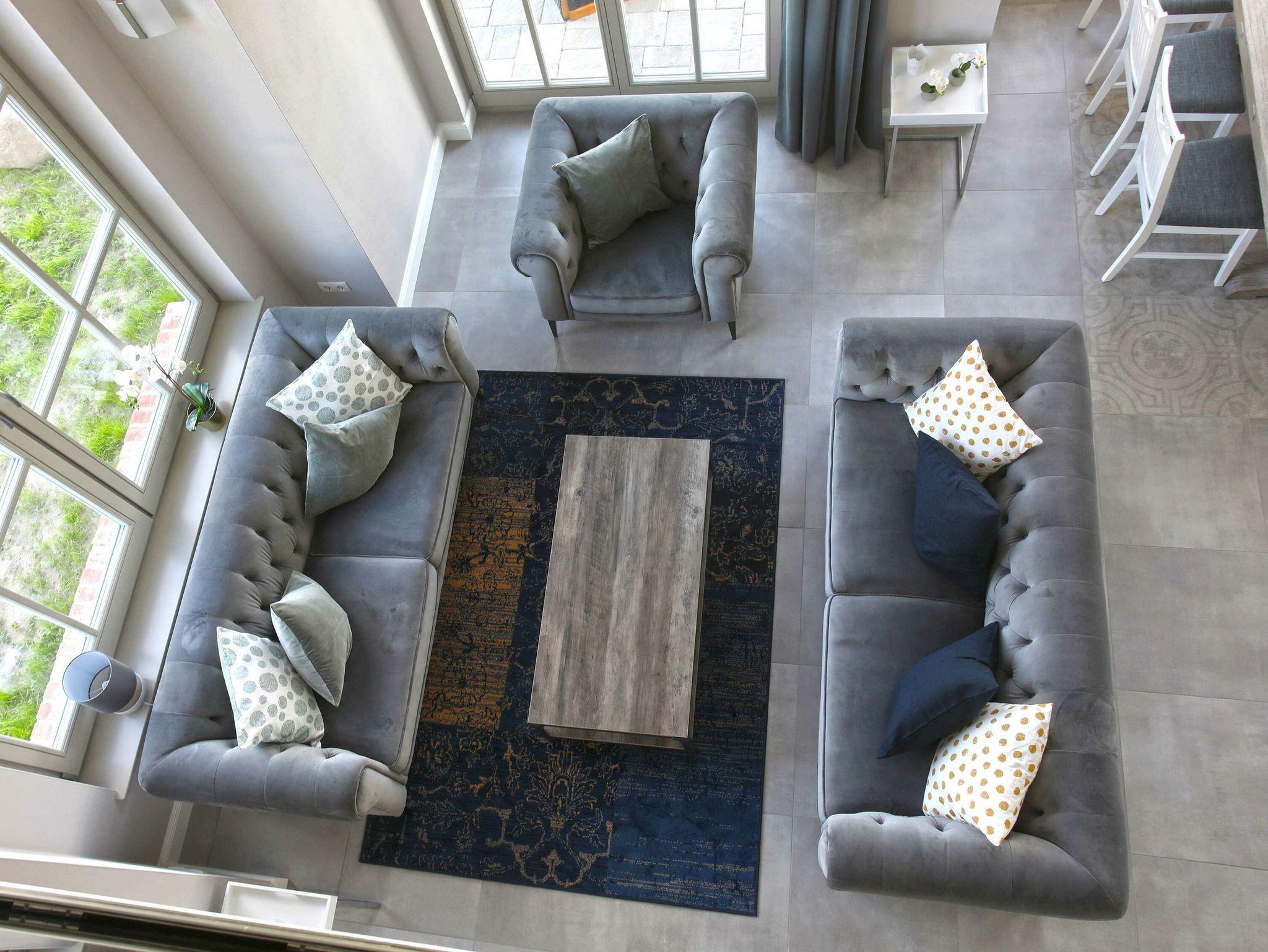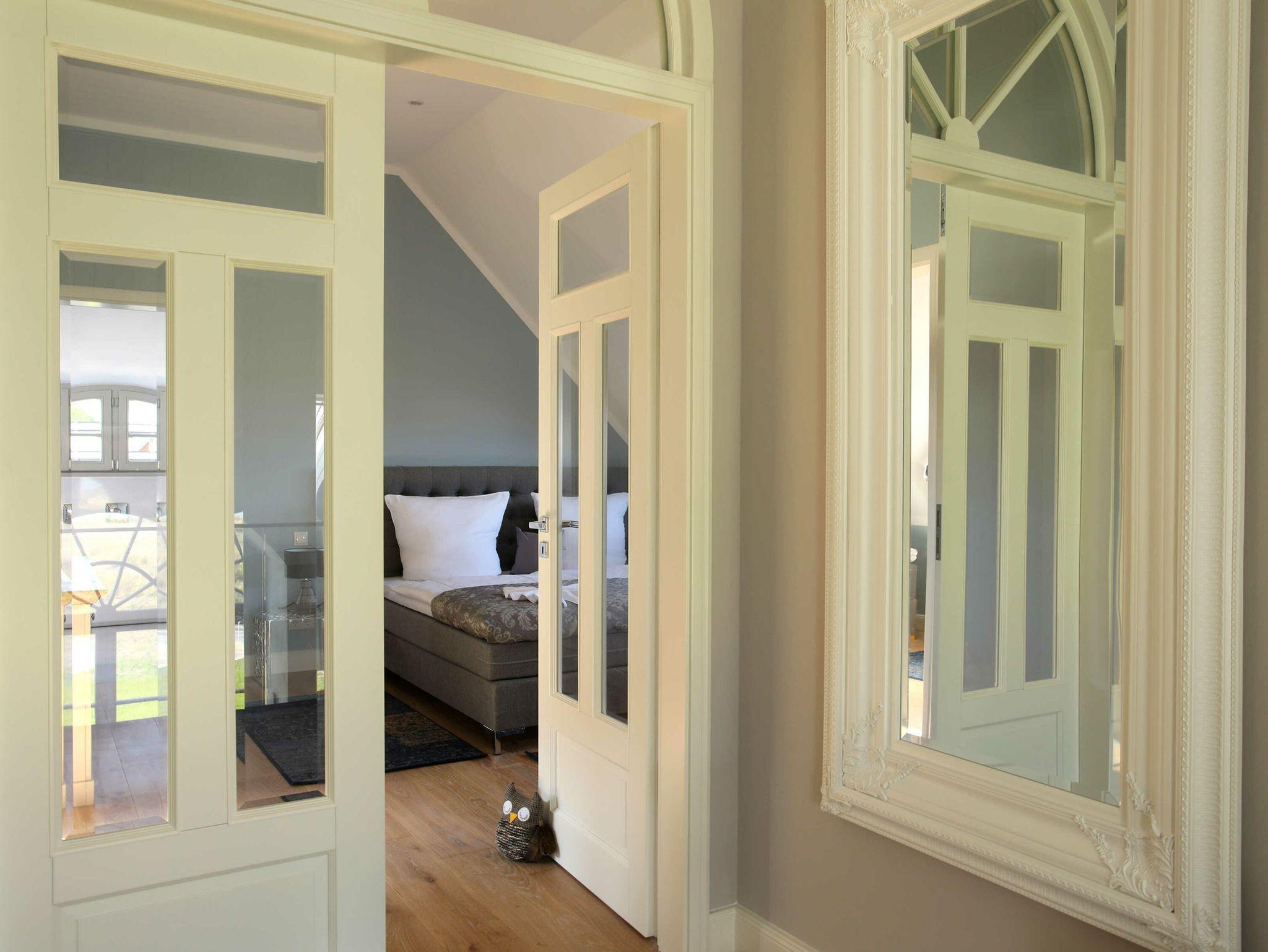 Das Architektenhaus verfügt über ca. 170 m² Wohnfläche, auf zwei Ebenen verteilt. Es erwarten Sie 4 luxuriöse Schlafzimmer, 2 vollwertige Bäder, eine eigene Sauna, ein vollausgestatteter Küchenbereich sowie ein großzügiger Wohnbereich mit einem Kaminkachelofen. Die riesige Terrasse mit Wasserblick, eigenem Strandkorb und gemütlicher Sitzgruppe lässt Sie den stressigen Alltag vergessen. Die Balkon- bzw. Terrassenmöbel stehen saisonal - in der Regel von Mai bis Ende September - zur Verfügung.