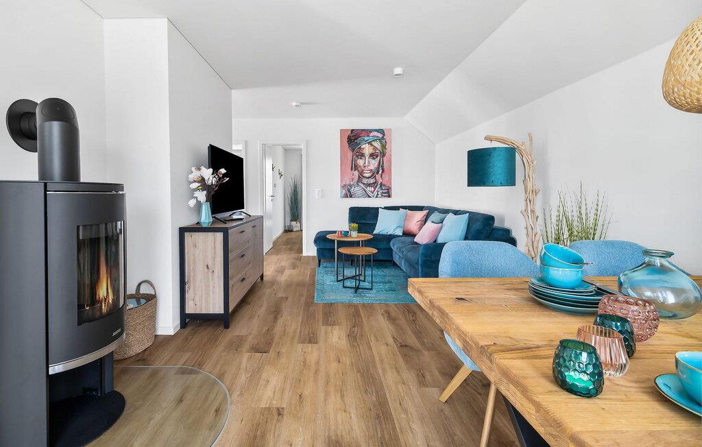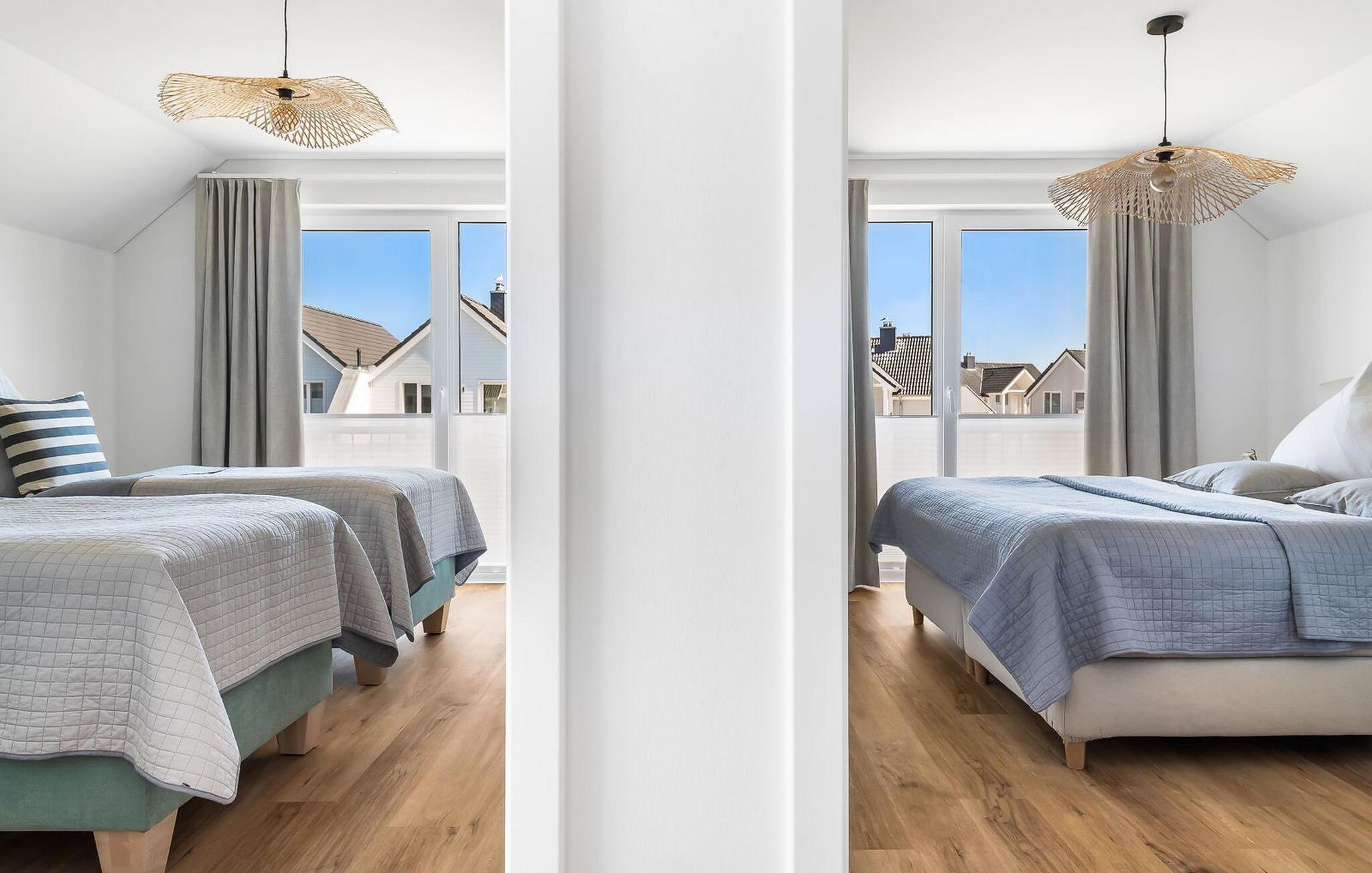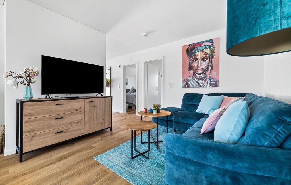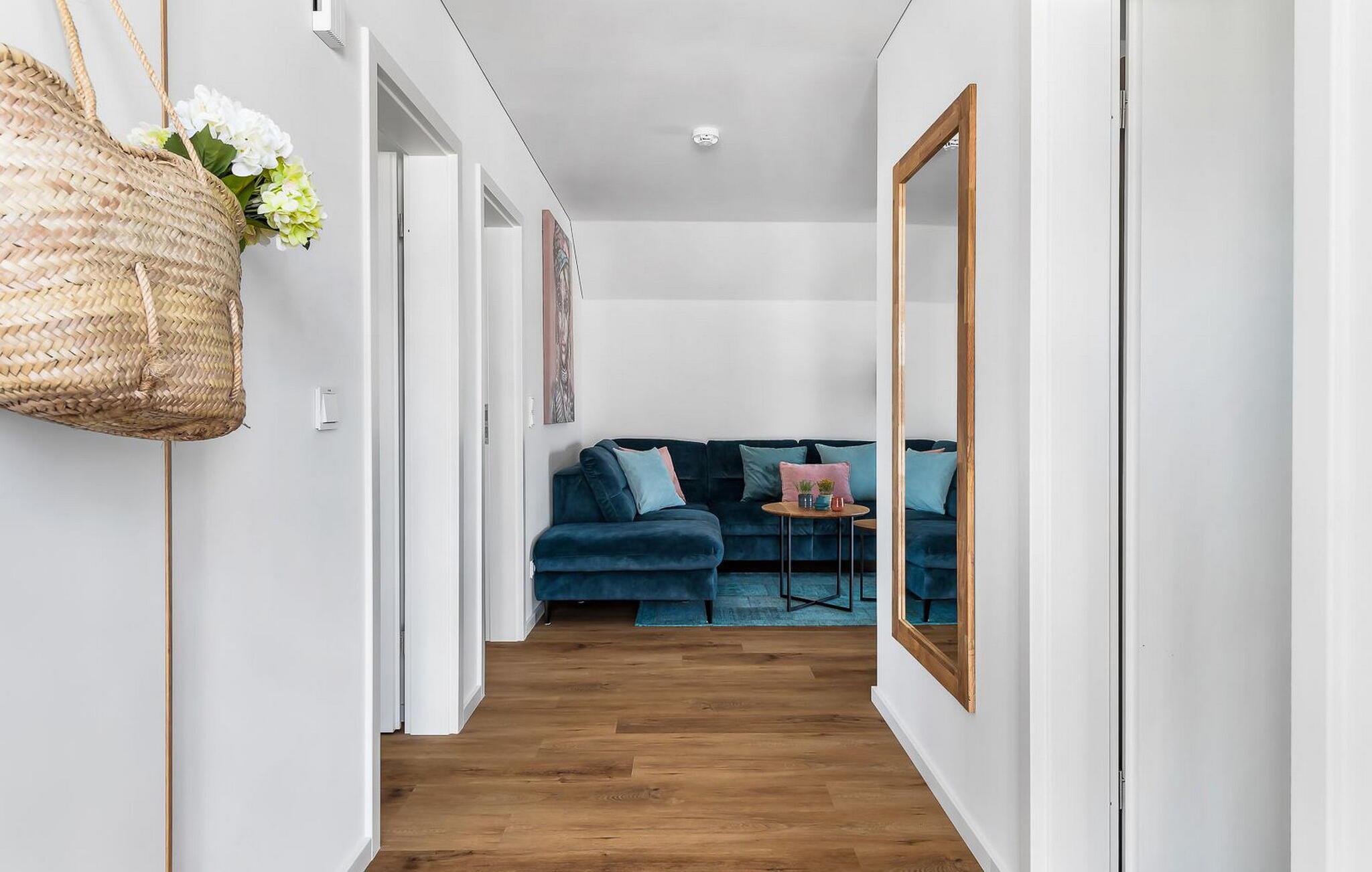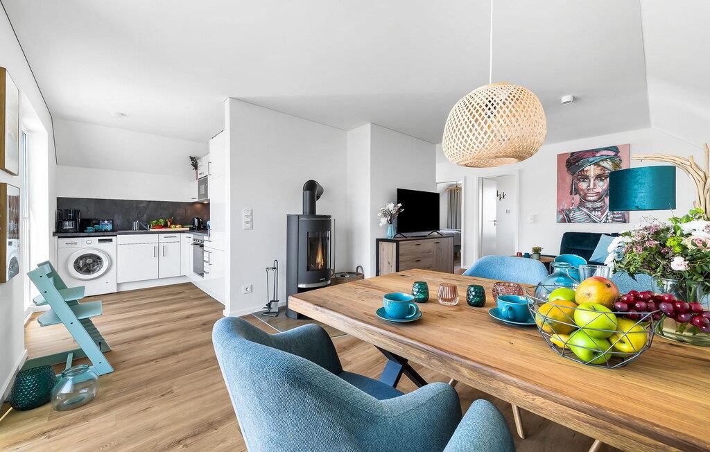 Denne moderne og komfortabelt indrettede ferielejlighed "Kleines Glück" på 1. sal kan rumme op til fire personer. Med to soveværelser, et køkken åbent til stuen, en tilstødende terrasse og en spiseplads, er det perfekt til en afslappende ferie med familie eller venner. Ferielejlighedens beliggenhed er ganske enkelt uovertruffen: Stranden Weidefelder ligger kun få minutters gang væk, og havnepromenaden med dens talrige indkøbsmuligheder kan også hurtigt nås. I skal ikke langt for at spille en runde minigolf – banen ligger i umiddelbar nærhed. Stuen er smagfuldt indrettet og sikrer hyggelige aftener med hele familien. Soveværelserne er udstyret med en dobbeltseng eller to enkeltsenge. Begge soveværelser har plisségardiner som mørklægningsmulighed. Til jeres egen lille wellness-oase er der en bruser i gulvniveau og en infrarød sauna på badeværelset. Myggenet og gulvvarme i hele lejligheden fuldender komforten. Der er en privat parkeringsplads foran boligen. Vores favoritsted: Afslut aftenen foran pejsen med en god bog og et glas vin. Bemærk venligst: OstseeResort Olpenitz er meget populært, og der bygges fortsat i parken. Ikke desto mindre kan I se frem til en 5-stjernet standard og et førsteklasses ophold. Byggeaktiviteterne kommer ikke til at forstyrre jer på ferien, og derfor gives der ikke yderligere afslag i prisen.