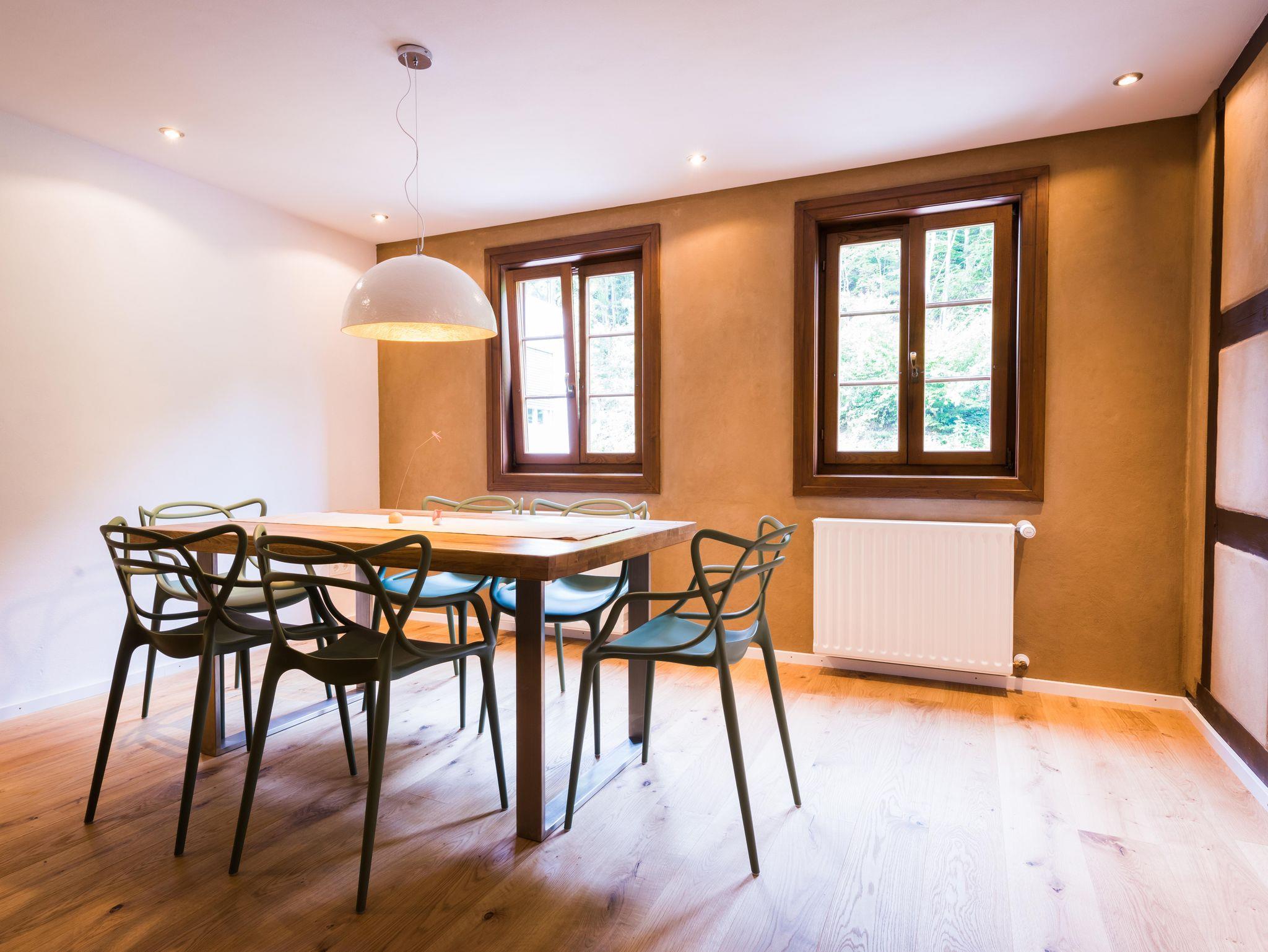 Wohnung 3 - großzügige Ferienwohnung für 4 Personen, zwei getrennte Schlafzimmer mit Doppelbett, hochwertige ökologische Ausstattung mit Lehmputz und Eichenholzparkett, Lehmfarben, Badezimmer mit bodenebener Dusche, hochwertig ausgestattete Küche, Senseo- Pad Maschine, Pfalzcard.