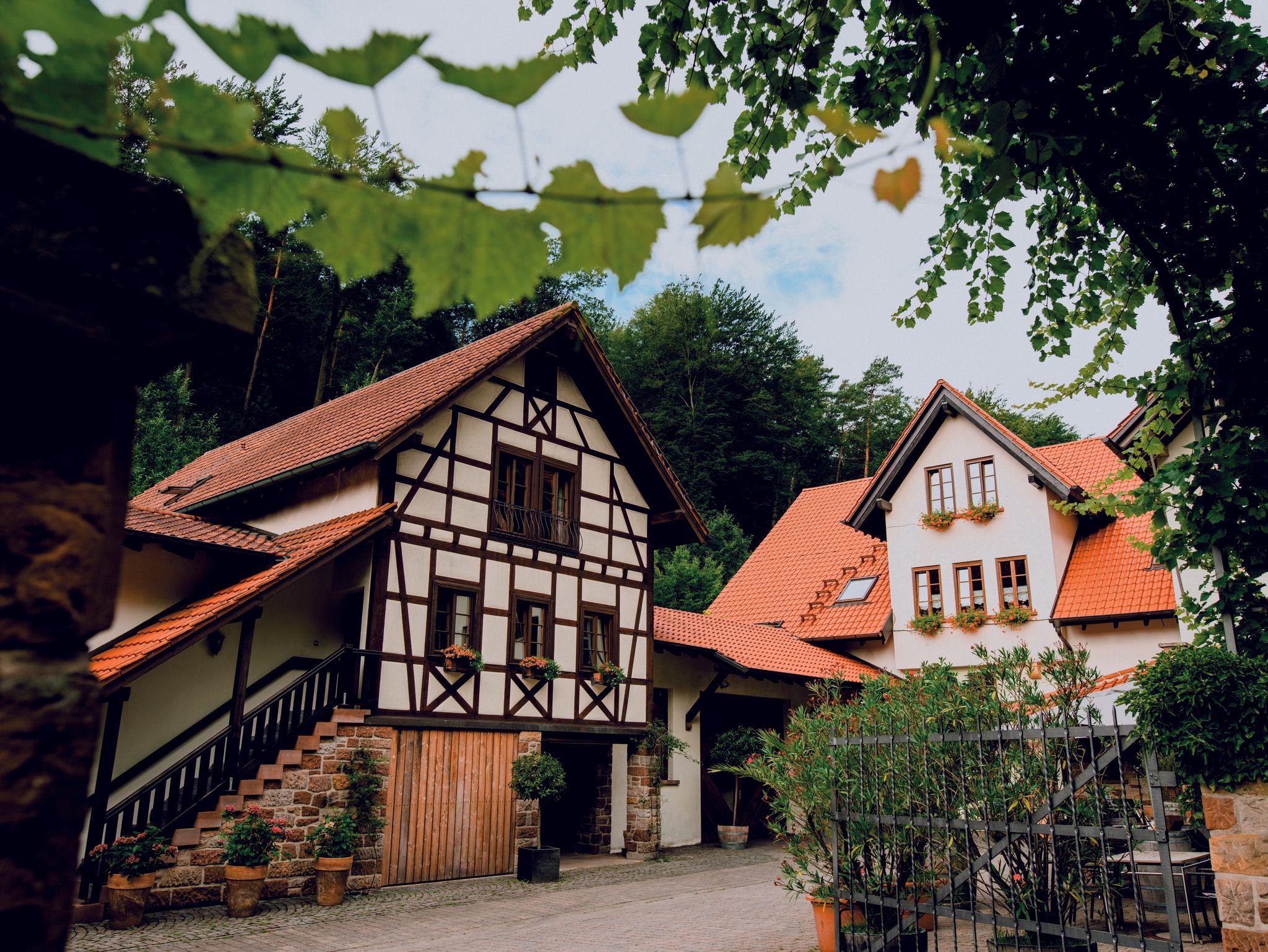 Wunderschön gelegen direkt an der Südlichen Weinstraße liegt das Kleinod Klingenmünster. In Traumlage direkt unterhalb der Burg Landeck liegt unser biologisch geführtes Weingut. Drei Generationen bewirtschaften die Rebfläche zu 100 % BIO . Im alten Fachwerkhaus, zentral im Gutshof gelegen, finden Sie stillvoll renovierte Ferienwohnungen für bis zu 4 Personen. Natürliche Materialien, wie Kalk- und Lehmputze, Kalkfarben und Eichendielen, bereiten ein wunderbares Raumklima. Hinter dem Haus gurgelt ein kleines Bächlein, die frische Waldluft wird vom Vogelgezwitscher erfüllt. Eine alte Stiege führt direkt vom Gutshof bis zur besten Weinlage , dem Kirchberg. Direkt am Haus liegen wunderbare Rad- und Wanderwege. Auch der Aufstieg zur Burg beginnt vor der Tür.