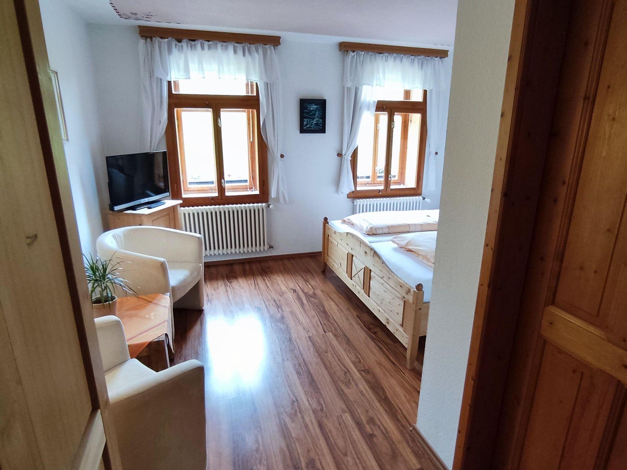 Zimmer 4 bietet einen herrlichen Blick ins Tal und Platz für bis zu 4 Personen.