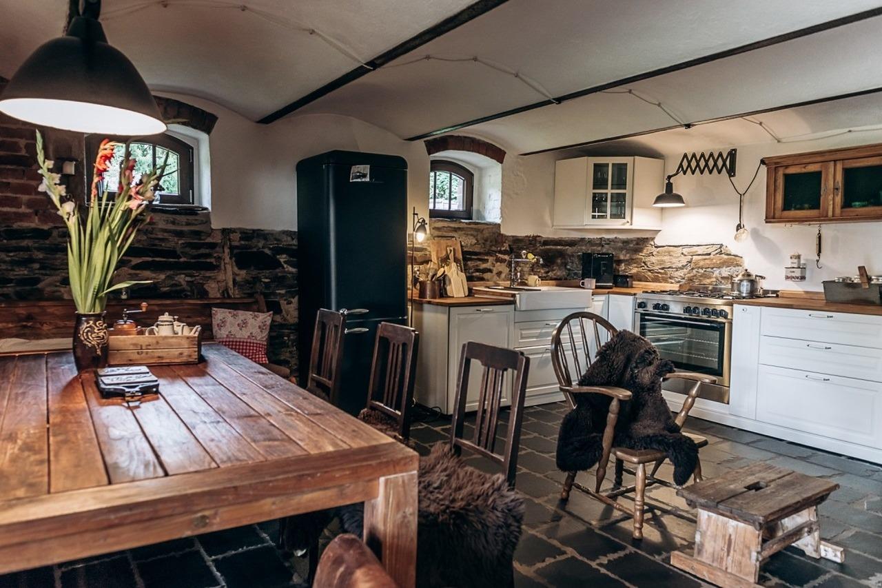 In unserer Berghütte haben alle Räume einen freien Blick - entweder ins Böhmische in der Tschechischen Republik oder ins Erzgebirge. Von der ruhigen Terrasse im eigenen Gartenparadies auf 2.000 m² (komplett umzäunt) schweift der Blick über Wiesen in die umliegenden Berge.