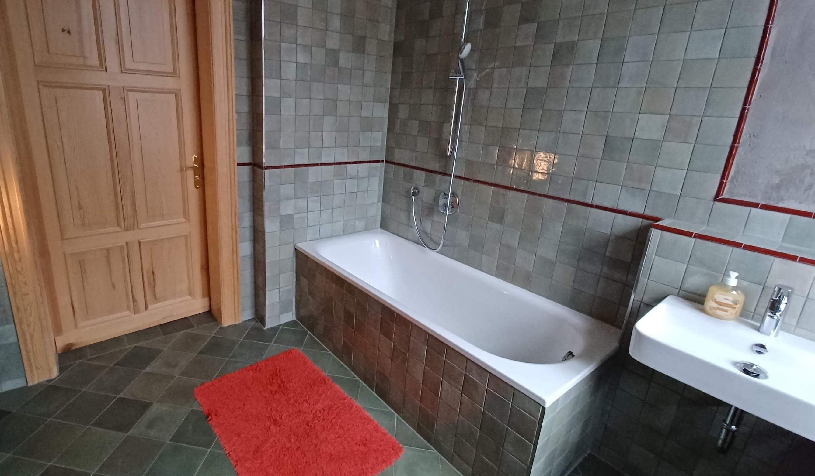 Das "Bad" verfügt über eine Badewanne mit Duschmöglichkeit und WC.