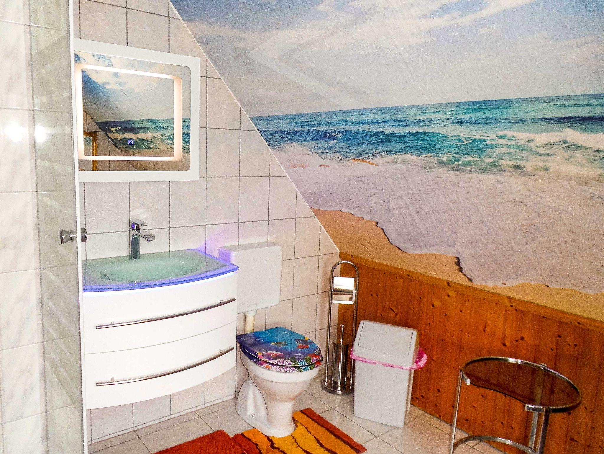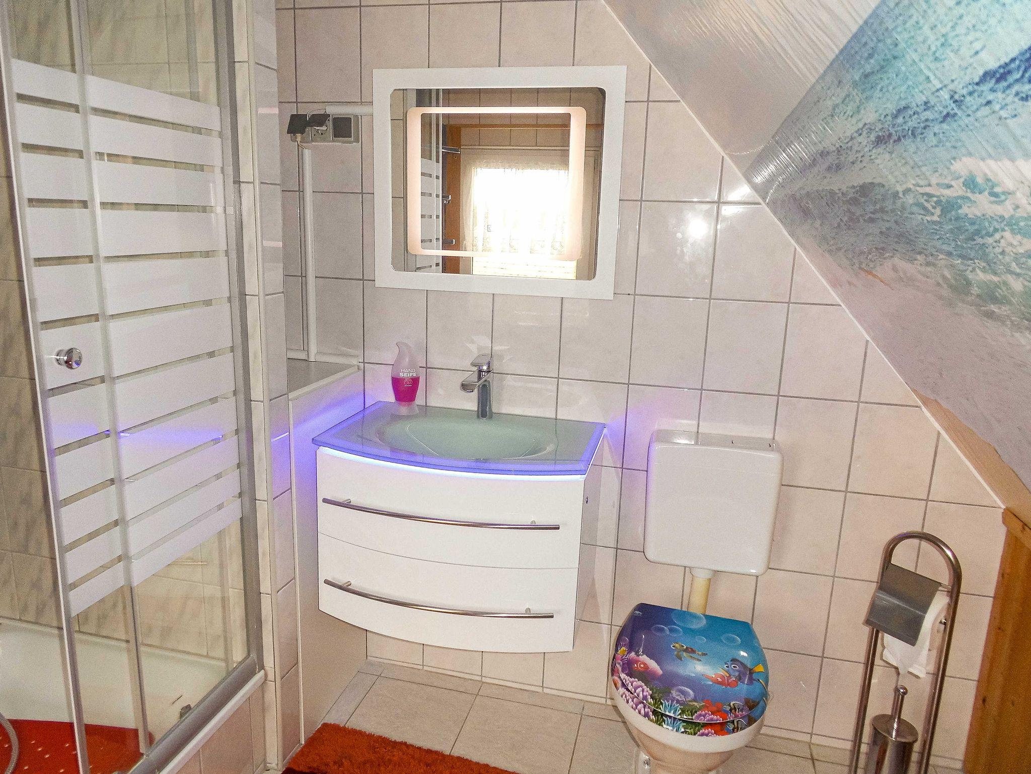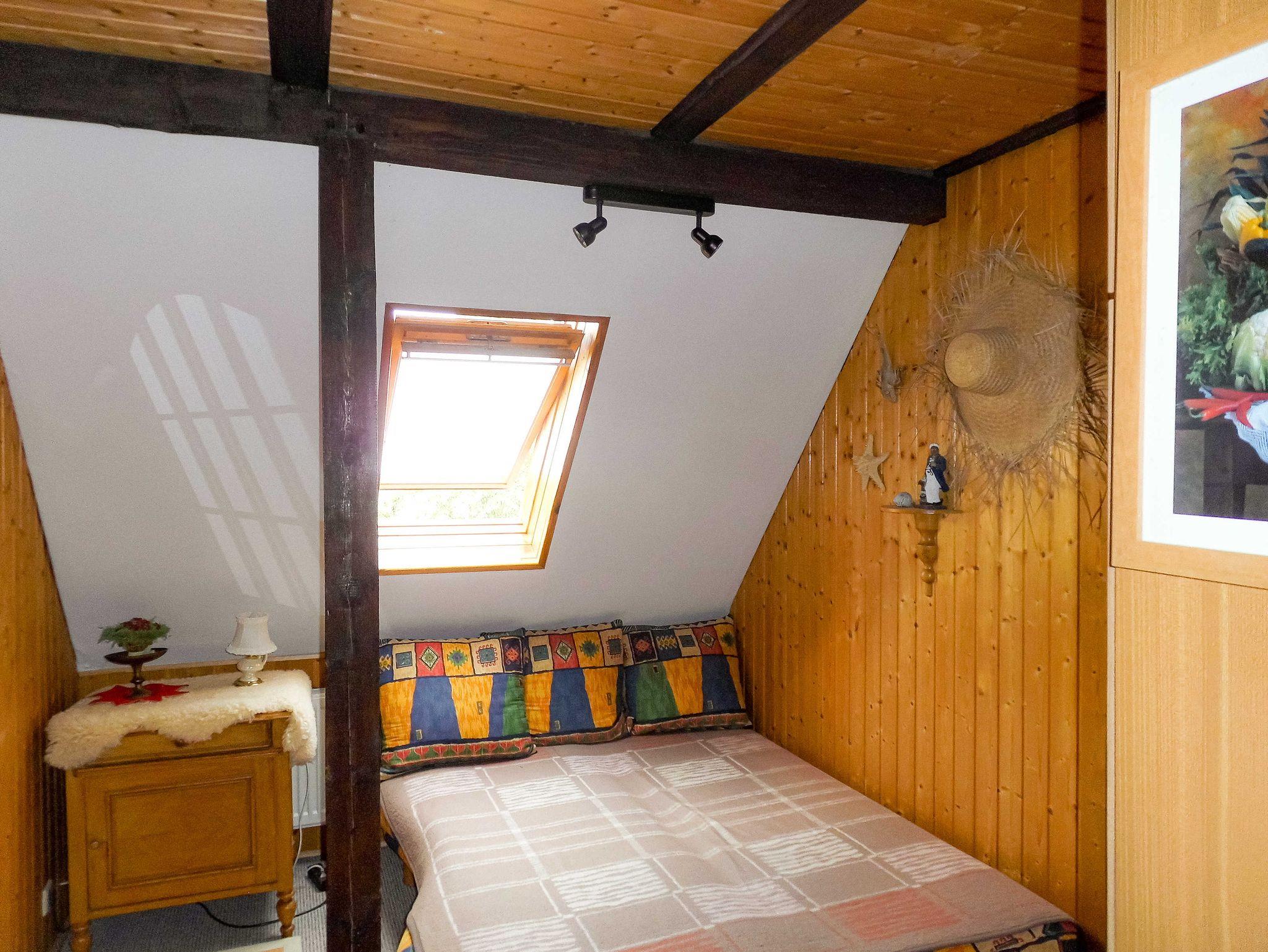Die separate Ferienwohnung befindet sich im Dachgeschoss unseres Wohnhauses und ist separat über eine Treppe im Windfang erreichbar. Das Haus befindet sich auf einem großen, unfriedeten Privatgrundstück mit einem sicheren Abstellplatz für PKW sowie Unterstand für Fahrräder in sehr ruhiger Randlage des Ortes.