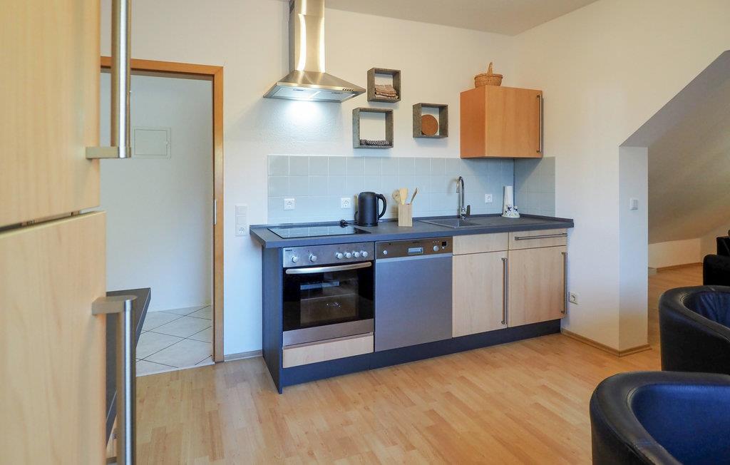 Velkommen til denne hyggelige lejlighed i Kemmenau, som ligger på øverste etage ud til smuk, grøn natur og et charmerende landskab. Glæd jer til en rolige stunder med familien i den åbne stue, hvor I kan læne jer tilbage med en god bog i sofaen, se en film eller fremtrylle lækre retter i køkkenet. Nyd morgenkaffen på altanen, mens I kigger ud på den vidunderlige udsigt. I kan også se frem til en lille have med terrasse og grill, så intet står i vejen for milde sommeraftener med brætspil udendørs.