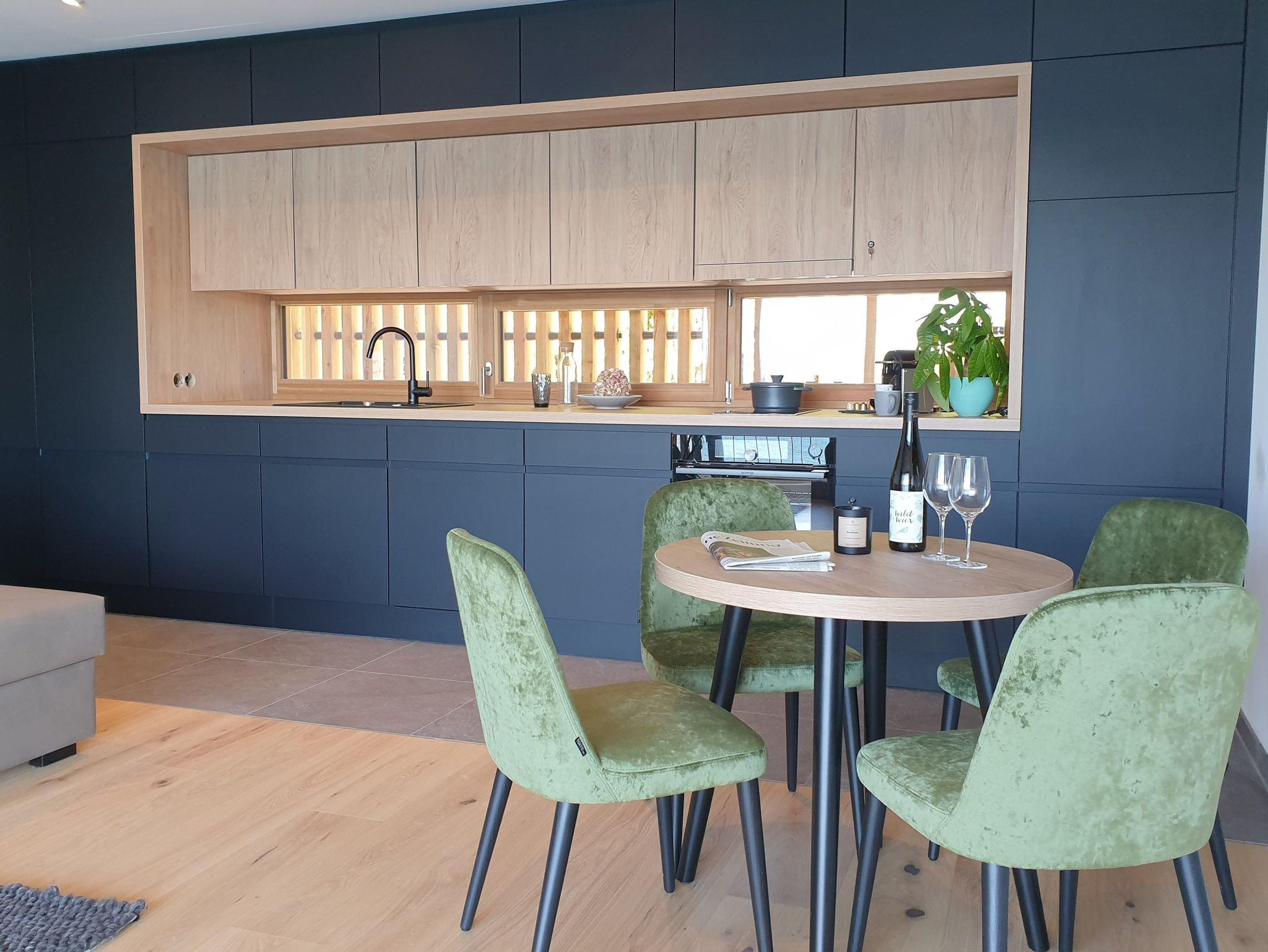 Die Apartments verfügen über ein Wohnzimmer (ca 30qm) mit gemütlichem Esstisch, einer Couch die man bequem in ein Zusatzbett umfunktionieren kann, einen großen Flat-TV für einen gemütlichen Fernseh-Abend und natürlich einen fantastischen Seeblick. Die integrierte und voll ausgestattete Designerküche ist mit einem Induktionsherd, Backofen, Espresso- und Spülmaschine ausgestattet. Selbstverständlich sind Kochutensilien, Geschirr, Gläser etc. vorhanden.