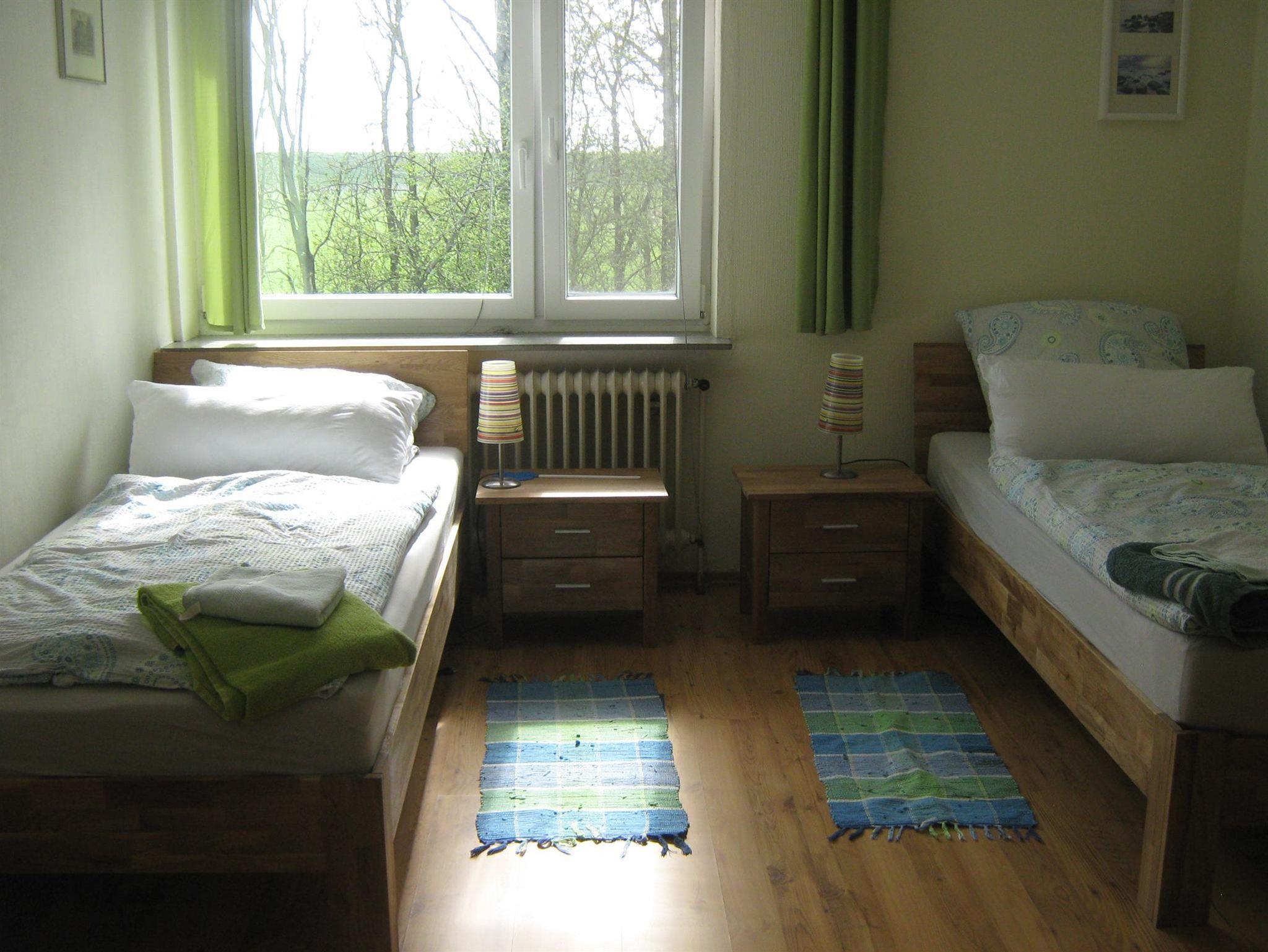 Die Ferienwohnung liegt im ersten Stock des Wohnhauses. Die Zimmer sind hell und gemütlich eingerichtet. Die Wohnung hat 2 Schlafräume, Wohn-Eßküche und ein kleines Duschbad. Die Küche ist u. a. ausgestattet mit Mikrowelle, Wasserkocher, Spülmaschine, Herd und Kühlschrank. Inkl. Bettwäsche u. Handtücher, sowie eine wöchentliche Reinigung der Wohnung. Baby- u. Kleinkinderausstattung vorhanden. Nichtraucherwohnung, keine Haustiere.