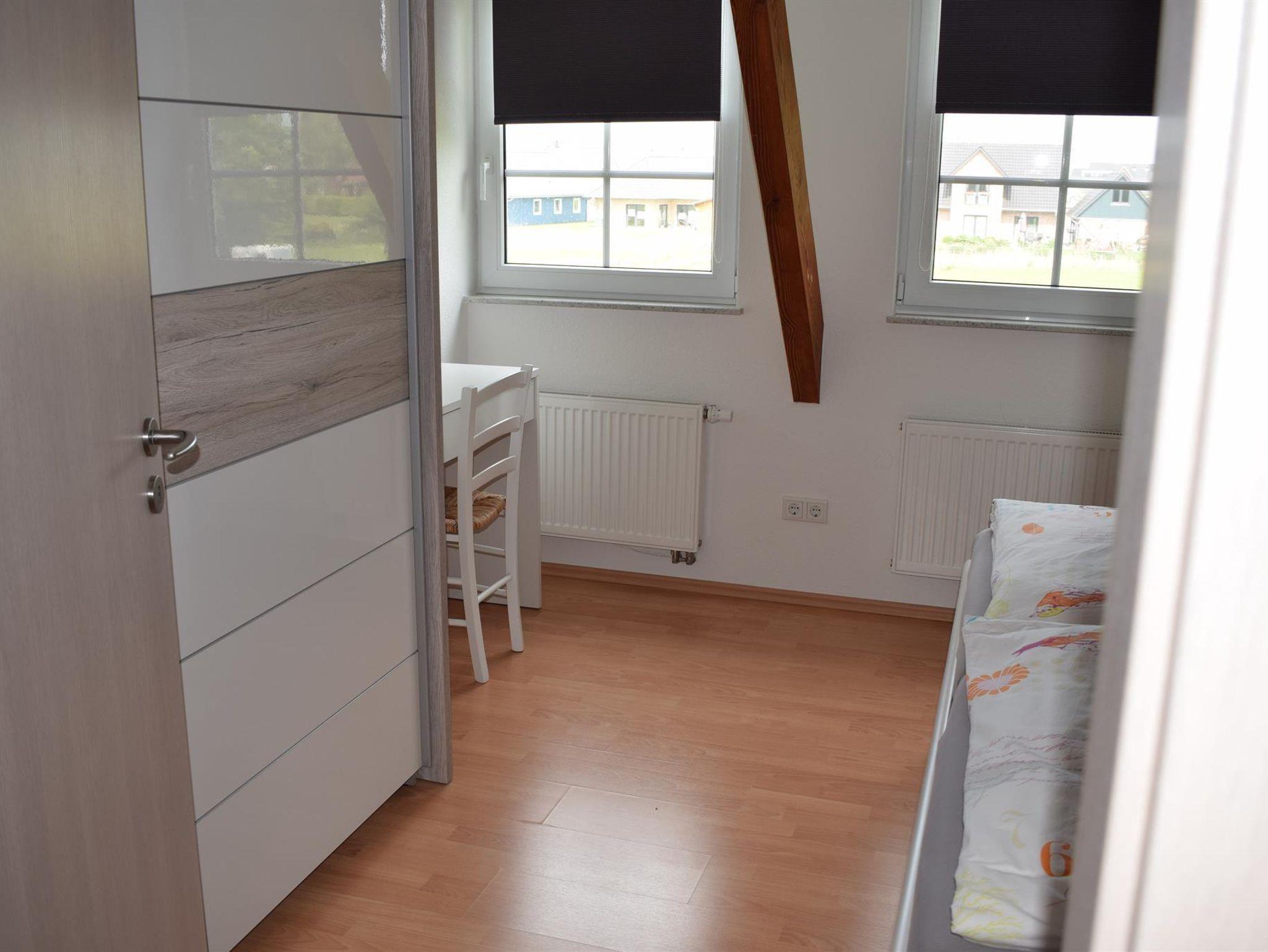 Im ersten Schlafraun befindet sich ein Doppelbett, ein Schrank und eine Schminktisch mit Spiegel. Im zweiten Schlafraum stehen zwei Einzelbetten und ein Schrank mit Spiegel.