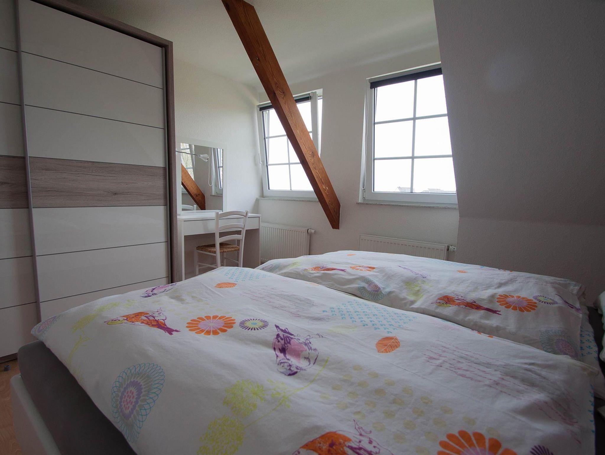 Die Ferienwohnung ist mit zwei Schlafräumen, einer Wohnküche und einem Badezimmer ausgestattet.
