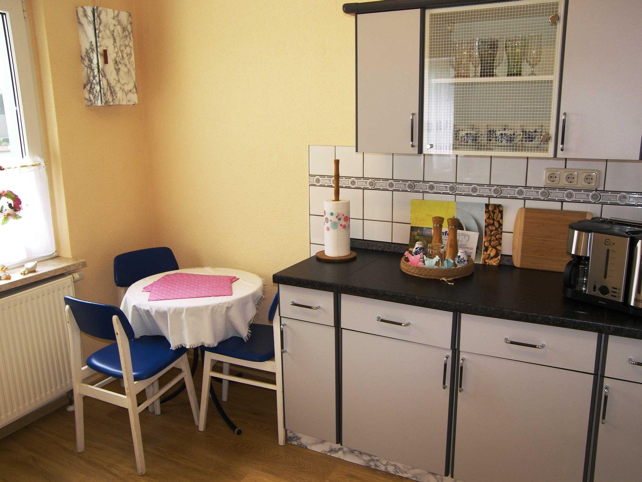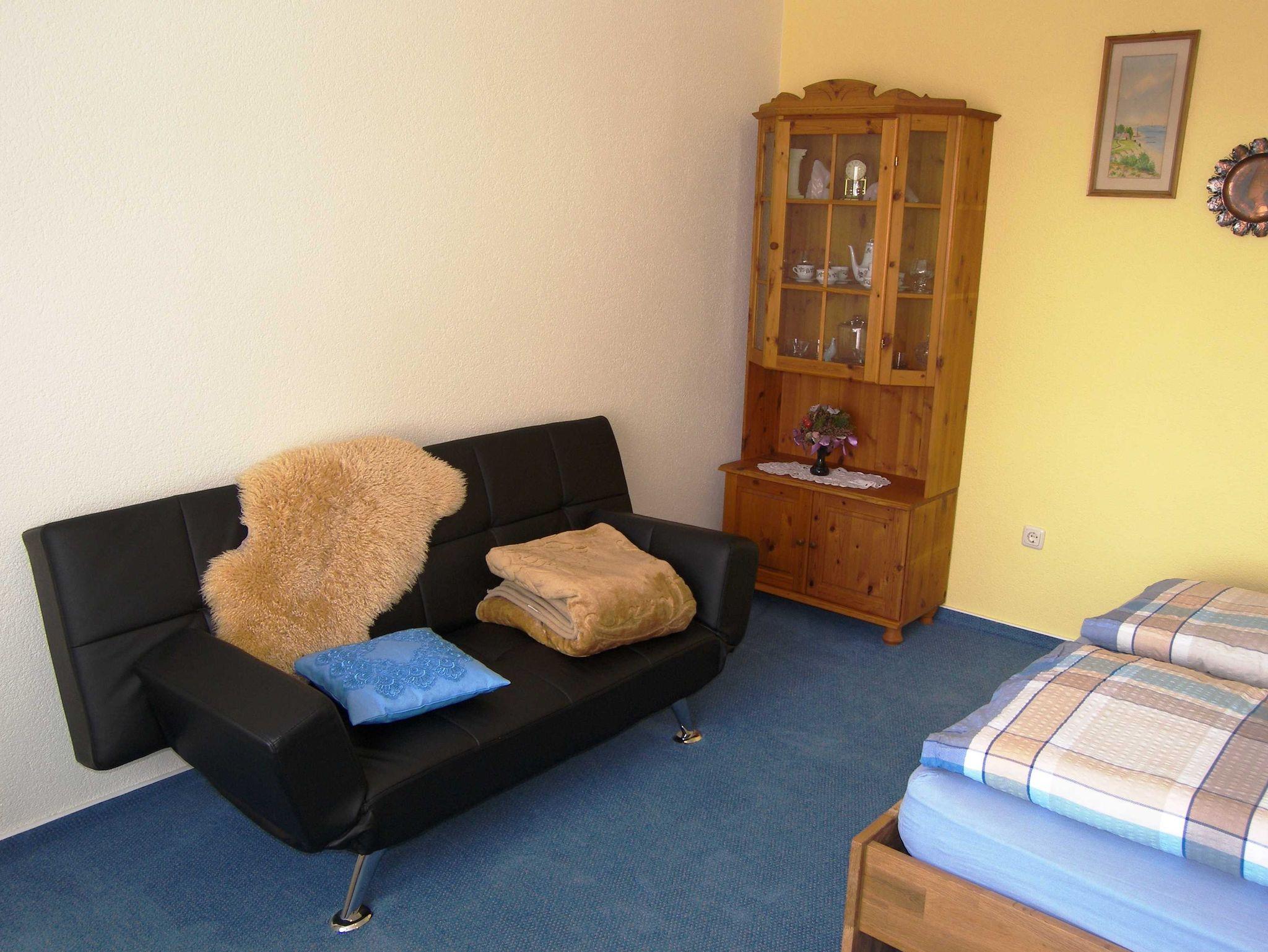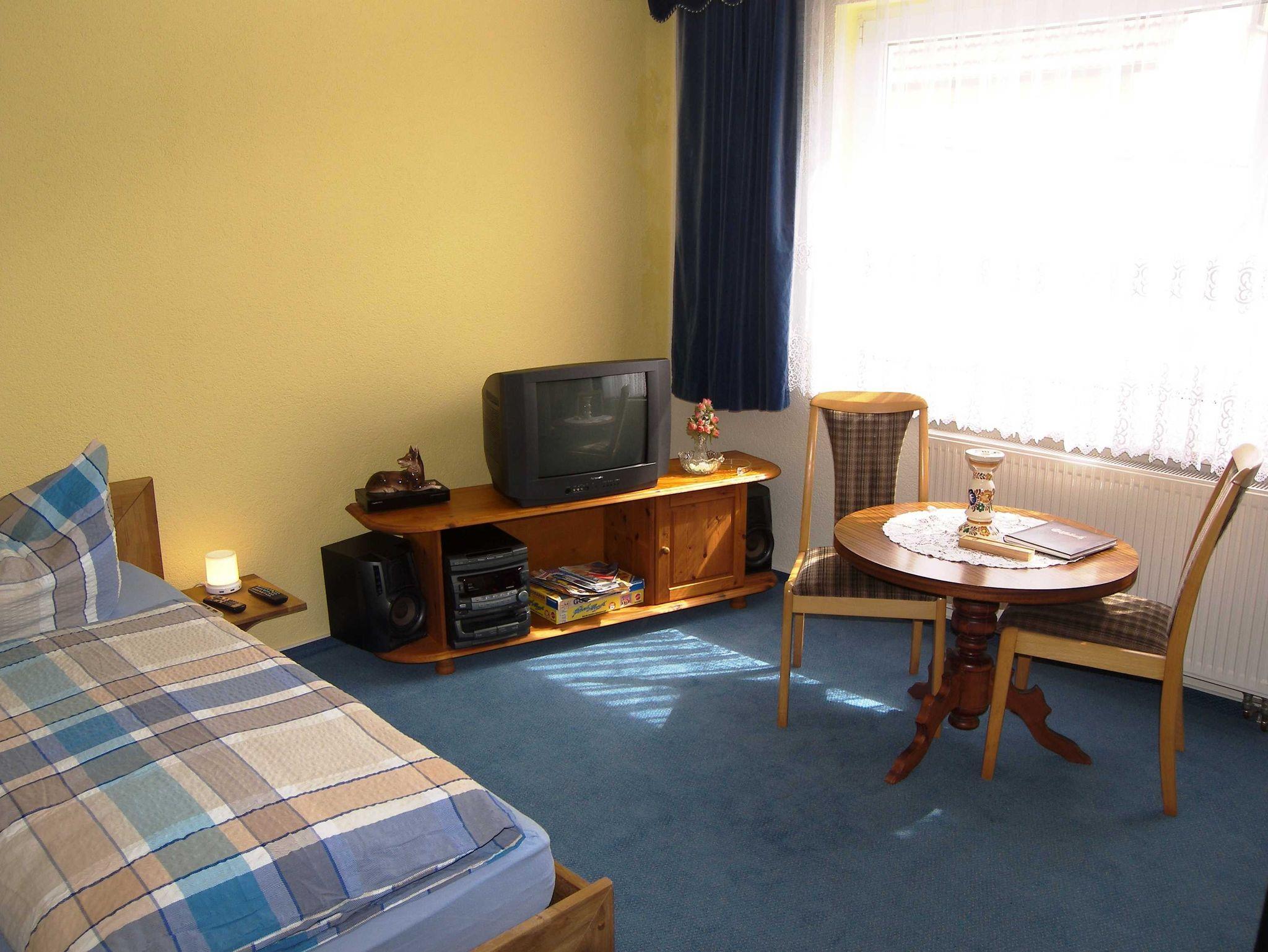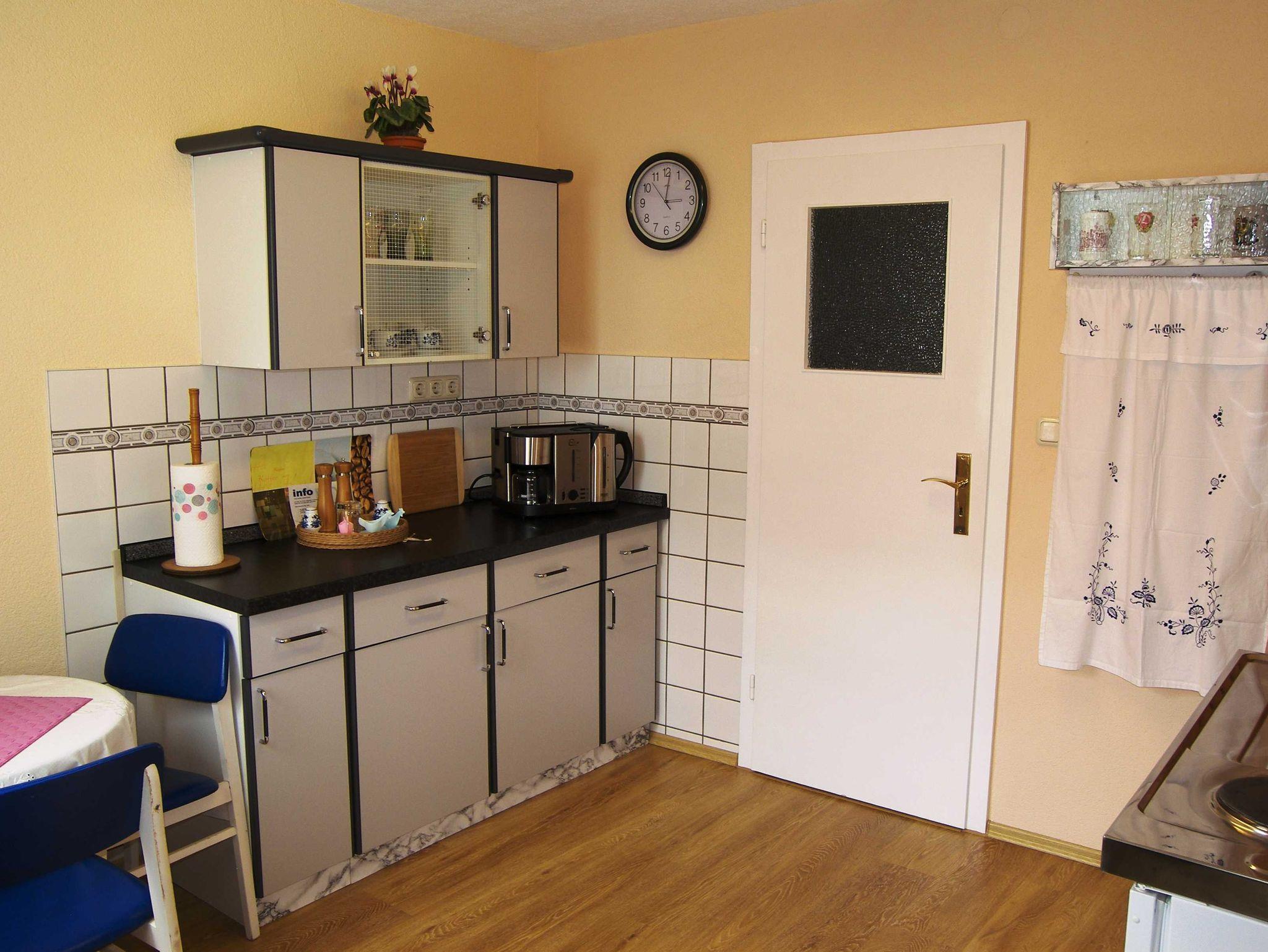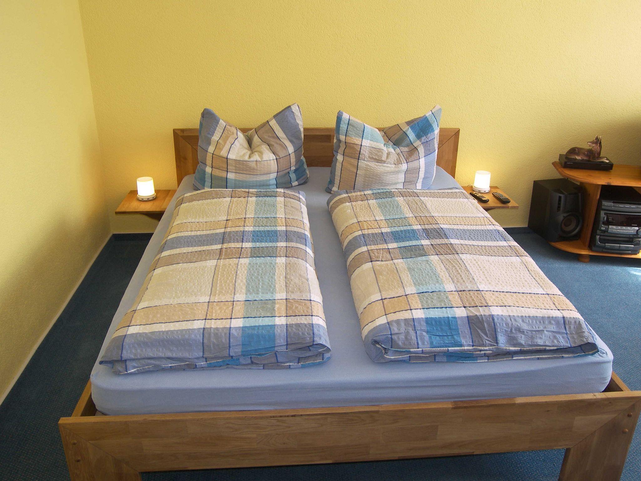 Die gemütlich und zweckmäßig eingerichtete Ferienwohnung ist ca. 35 qm groß und befindet sich in einem Anbau auf dem Hof der Vermieter. Über einen kleinen Flur gelangen Sie in den kombinierten Wohn- und Schlafbereich mit einem Doppelbett, einer Schlafcouch, Anbauwand, Flachbild-TV und CD-Radio. Die Küche ist ausgestattet mit Elektroherdplatte und Kühlschrank mit Tiefkühlfach, sowie mit einem Esstisch mit 3 Stühlen. Das Bad verfügt über Dusche/ WC und Fön. An der Ferienwohnung befindet sich eine Terrasse mit Gartenmöbeln und Grillmöglichkeit. Die Bettwäsche ist bereits im Gesamtpreis enthalten. Handtücher sind bitte selbst mitzubringen. Diese werden nicht zur Verfügung gestellt. Ein Parkplatz für Ihren PKW ist gegenüber vom Grundstück kostenfrei vorhanden.