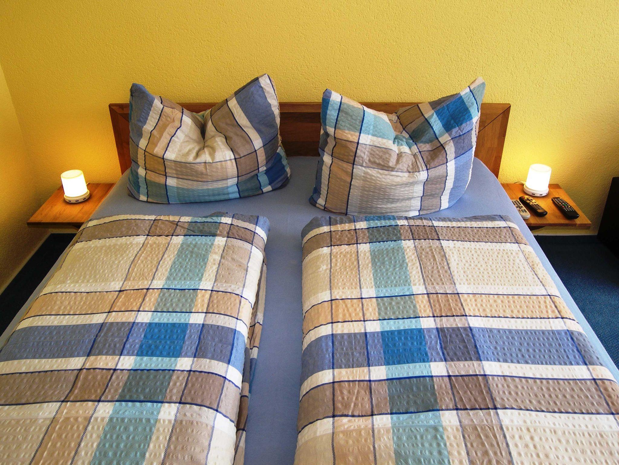 Auf 35 qm finden Sie einen kombinierten Wohn- und Schlafraum mit Doppelbett, Couch und Fernseher, sowie einen kleinen Sitzbereich. Über den kleinen Flur erreichen Sie die separate Küche mit einem Esstisch für 3 Personen. Das Badezimmer ist mit einer Dusche ausgestattet. Die Bettwäsche ist bereits im Gesamtpreis enthalten. Handtücher sind bitte selbst mitzubringen. Diese werden nicht zur Verfügung gestellt.