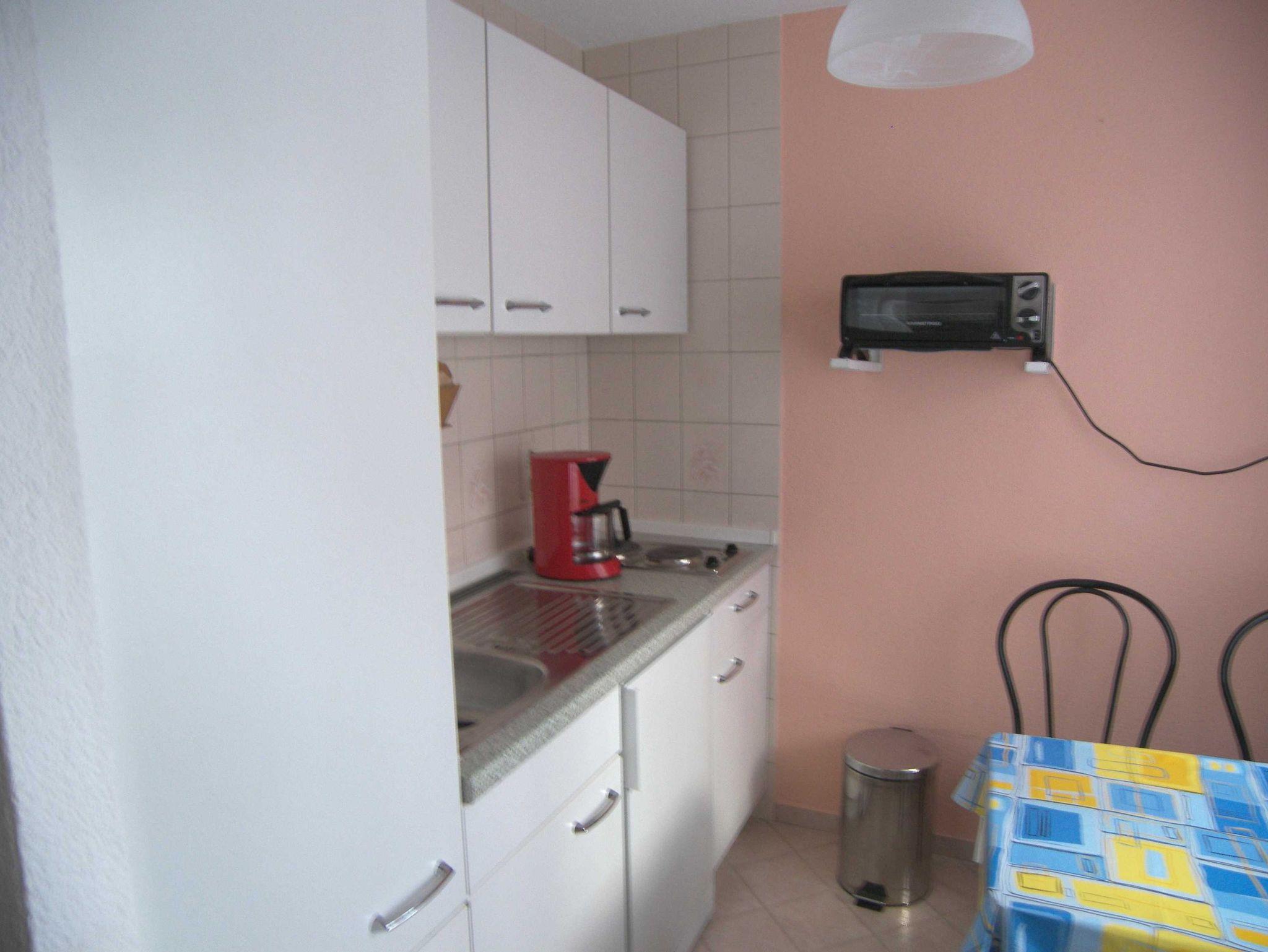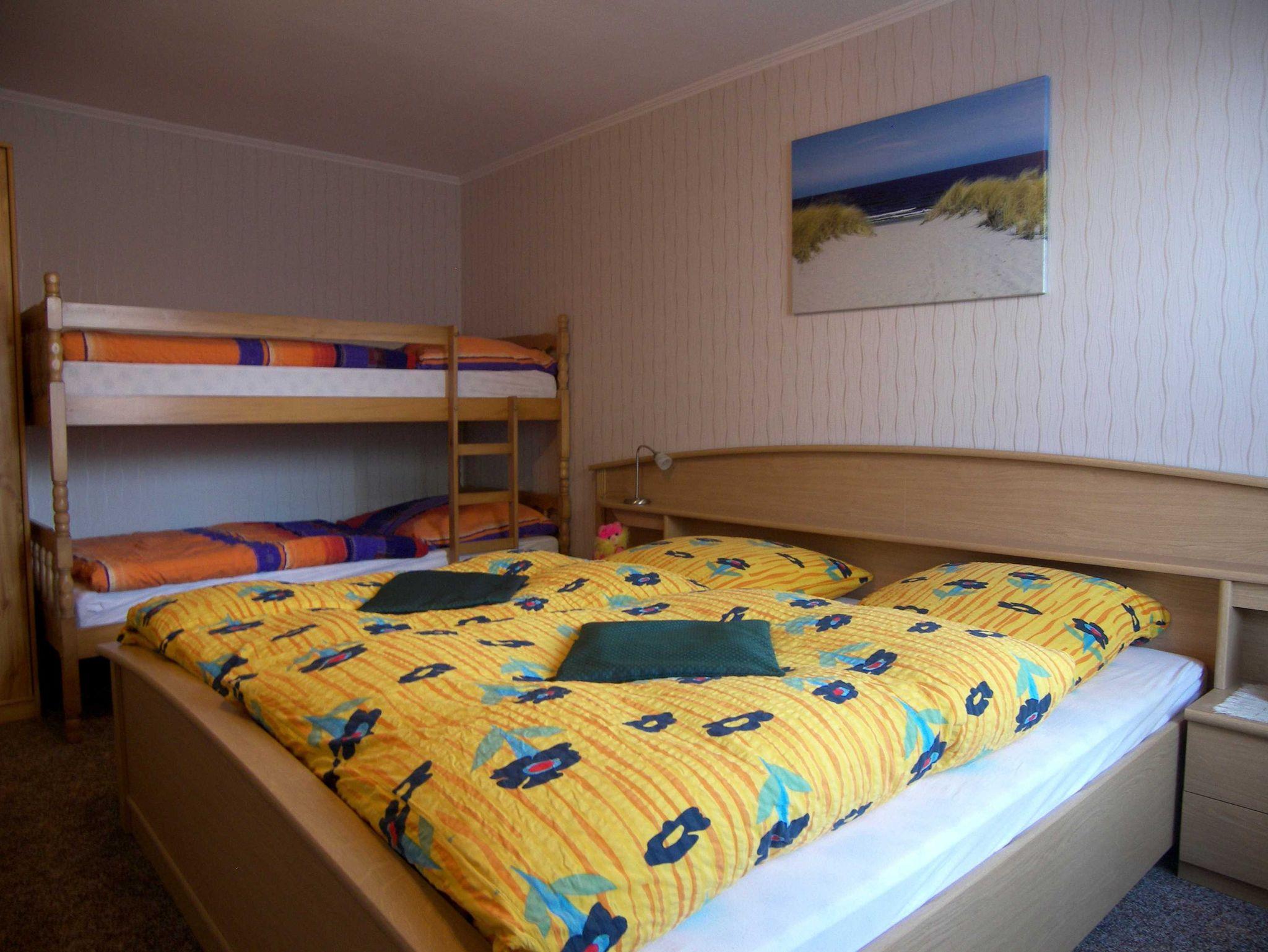 Die gemütliche 2-Raum-Ferienwohnung ist ca. 46qm groß und und für 2 bis 4 Personen geeignet. Das Wohnzimmer ist mit einer gemütlichen Couchecke, Sat-TV und Radio sowie einem Esstisch ausgestattet. Die Pantry-Küche verfügt über einen 2-Platten-Herd, Kühlschrank mit Gefrierfach, Kaffeemaschine, Wasserkocher und Toaster. Das separate Schlafzimmer ist mit einem Doppelbett und einem Etagenbett ausgestattet. Das Badezimmer verfügt über Dusche/WC. Vom Wohnzimmer kommen Sie direkt auf eine kleine Wiese mit Strandkorb, Spielgeräten und einem Gartenpavillon mit Gartenmöbeln. Ein Grill für gemütliche Sommerabende ist ebenfalls vorhanden.