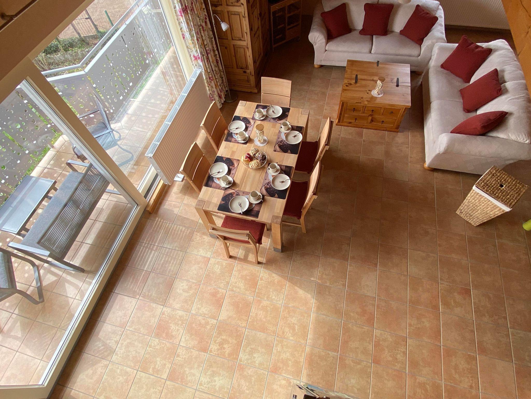 Aufgrund der außergewöhnlichen offenen Raumgestaltung im Küchen-, Ess- und Wohnzimmerbereich und der Empore über dem Wohnzimmer, entsteht eine sehr geräumige behagliche Wohnung mit einem besonderen Wohngefühl.