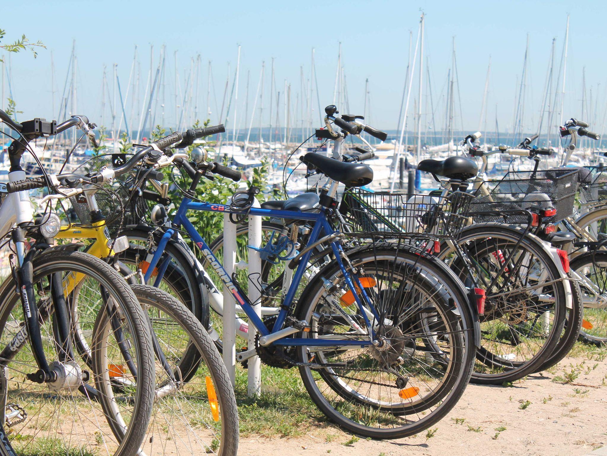 Am Haus: weitläufiger Garten mit Bäumen, Sträuchern, Spielplatz und Pferdekoppel. Parkplatz direkt am Haus. Abschließbarer Unterstellschuppen für Fahrräder oder Wassersportgeräte in Gemeinschaftsnutzung.