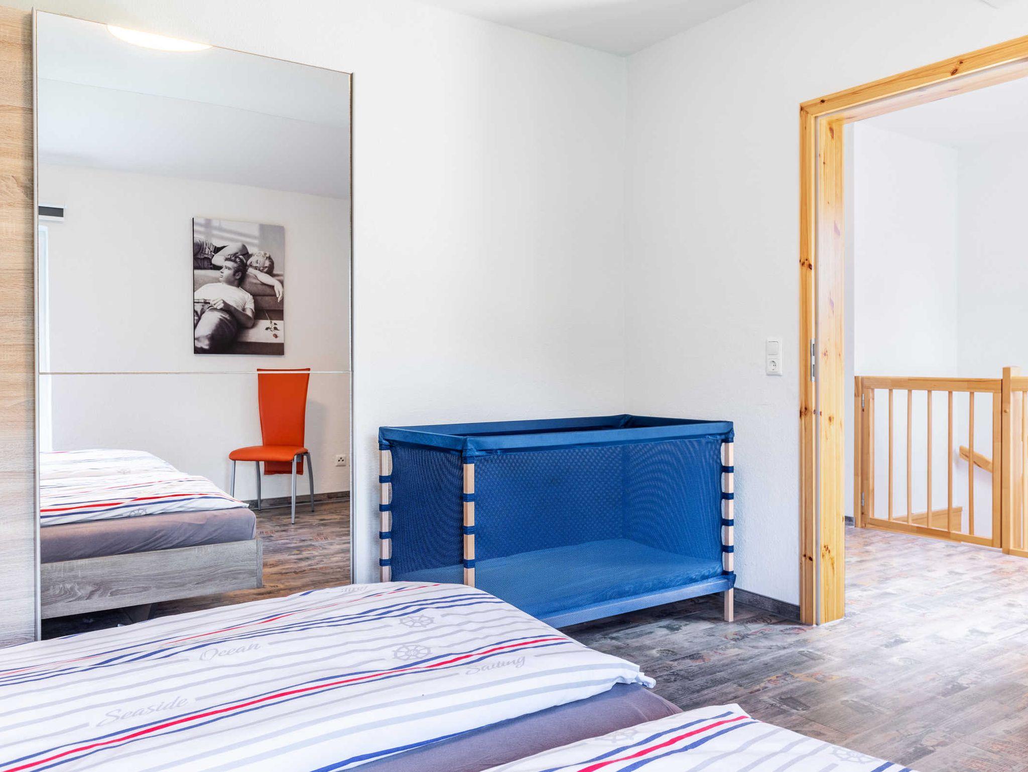 Spiel-und Bolzplatz im Ort, Kinderbett, Hochstuhl, Kinderwagen (zum Buggy umbaubar), Steckdosenschutz, Treppenschutzgitter, Spielgerät zum Klettern, Rutschen und Schaukeln im Garten. Die Pferde auf der angrenzenden Koppel dürfen gern gestreichelt und unter Anleitung geputzt werden. Nach Absprache können die Kinder auf dem Pferd geführt werden oder Reiten lernen. Dies auf dem nahegelegenen privaten Pferde- und Reiterhof. Auf Wunsch kann ein Babysitter Service kann organisiert werden.