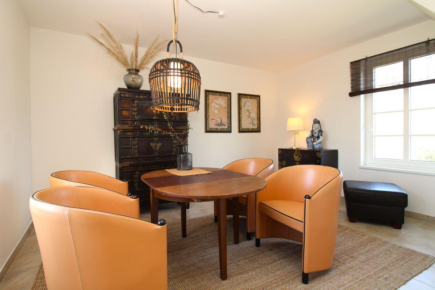 Bei optionaler Zubuchung der Turmsuite verfügt die Fewo über ein separates und großzügiges Esszimmer, welches mit einem Esstisch, 4 Sesseln, einem Schrank sowie einem Sideboard möbliert ist.