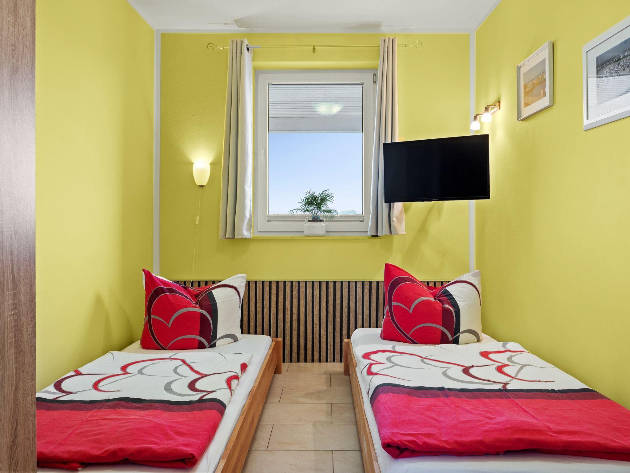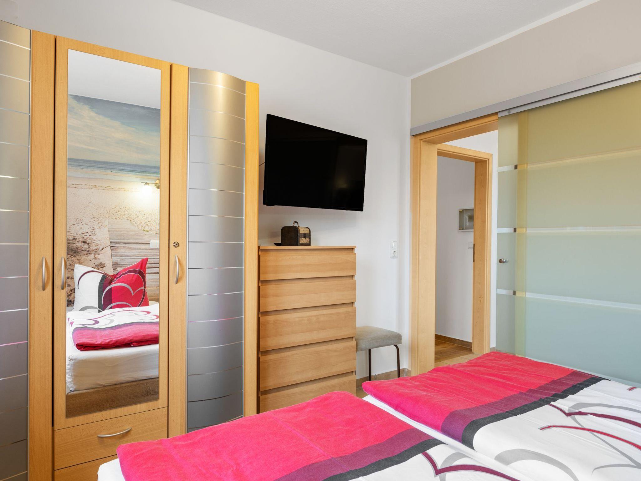 Unsere gemütliche Ferienwohnung OstseeNähe bietet Ihnen alles, was Sie für einen entspannten Aufenthalt benötigen. Sie verfügt über zwei einladende Schlafzimmer mit TV, eines mit einem Doppelbett (1,80x2,00) und das andere mit 2 Einzelbetten (je 0,90x2,00). Beide Schlafzimmer bieten ausreichend Stauraum für Ihr Gepäck.