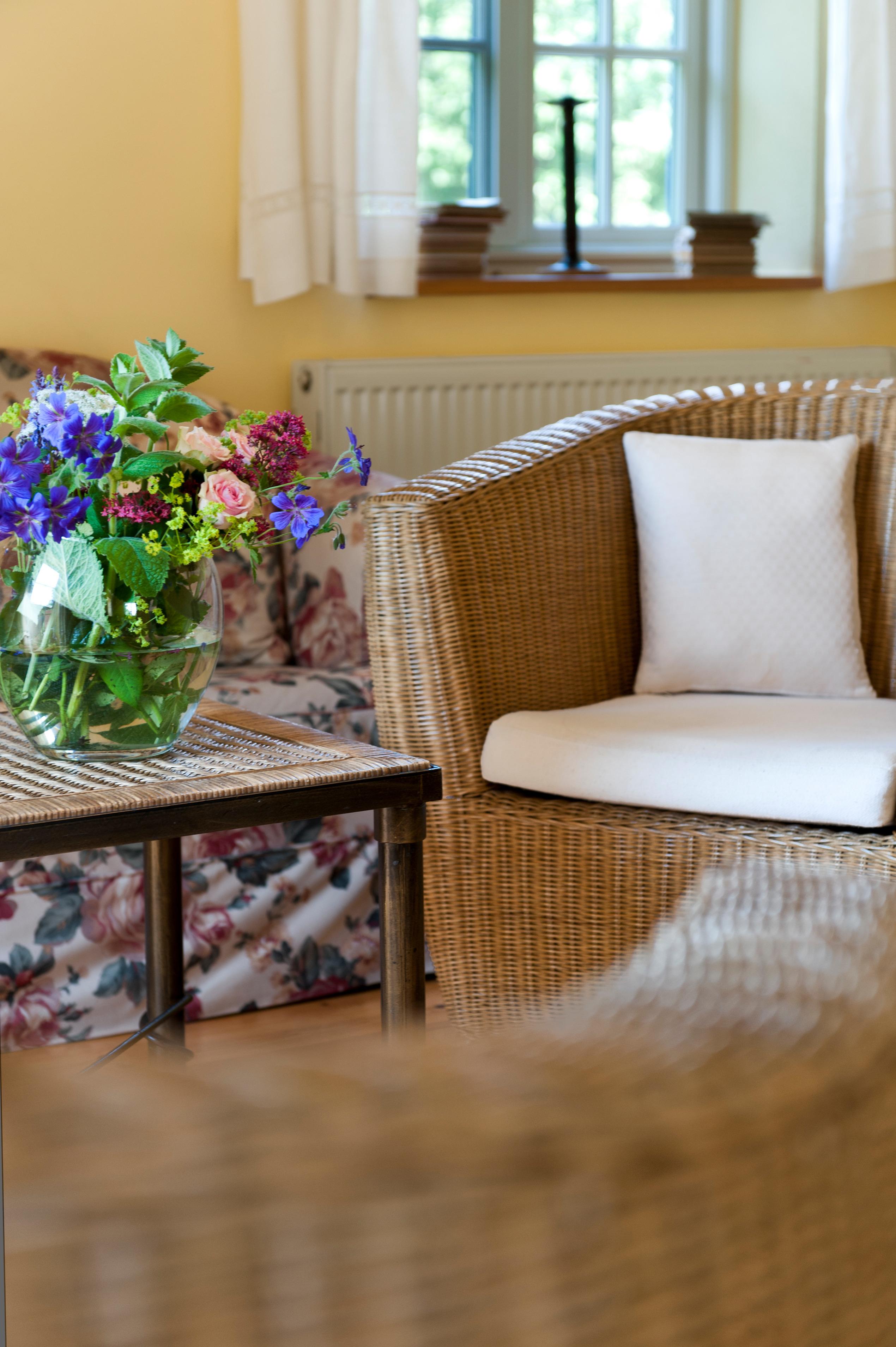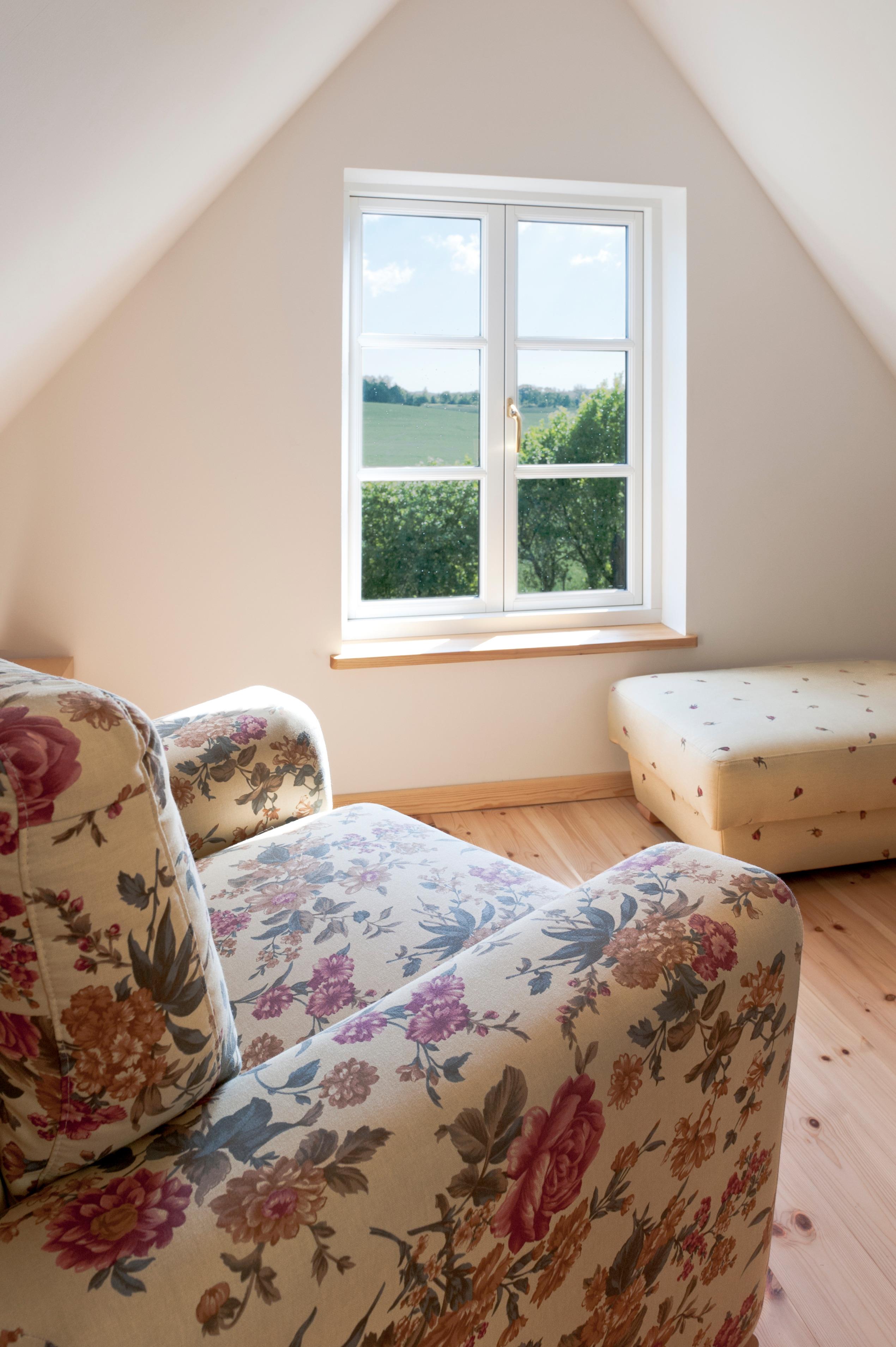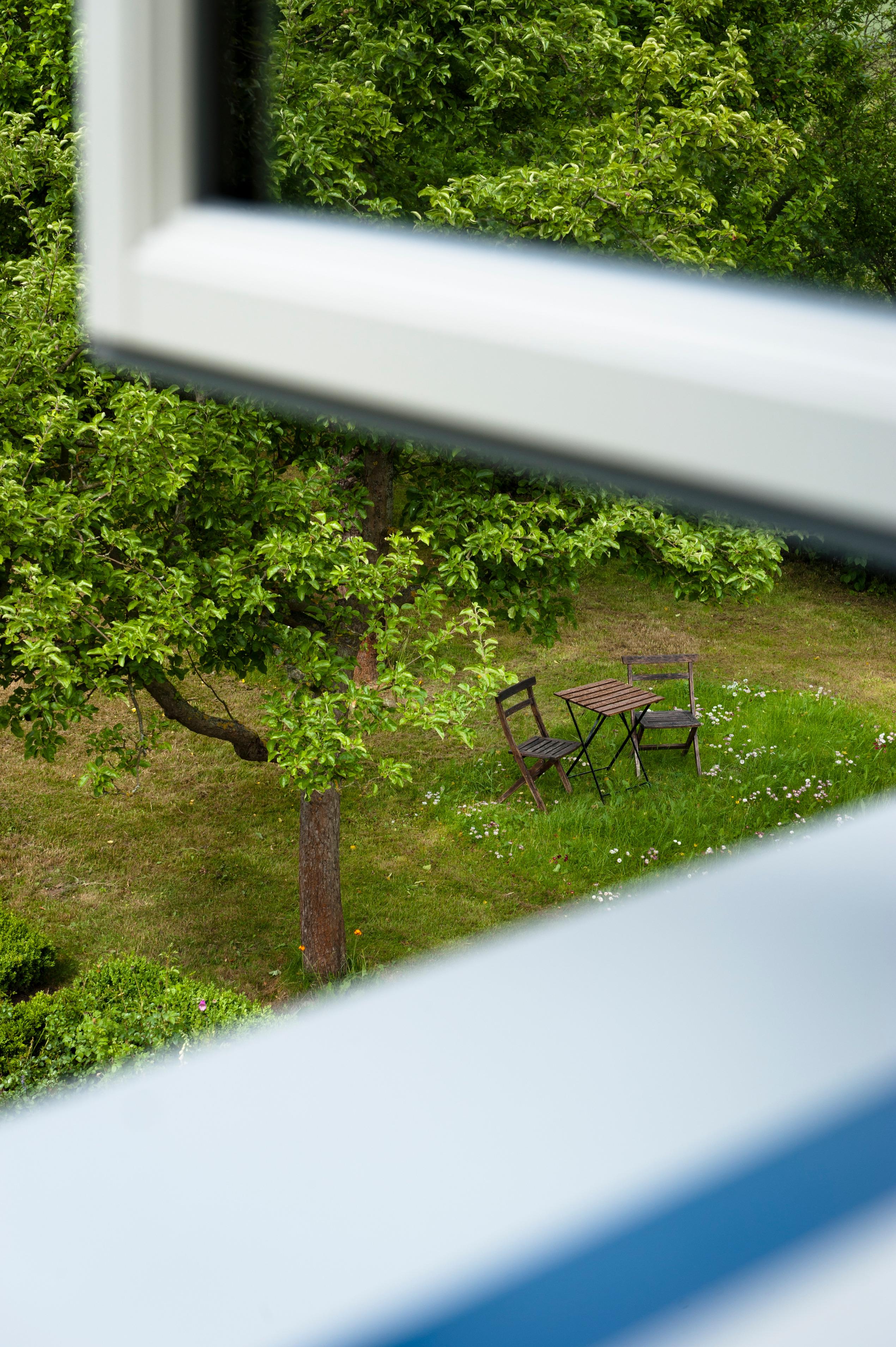 In der Galerie im Dachgeschoß kann man auch bei schlechtem Wetter den Blick in den Garten und über die Landschaft schweifen lassen.