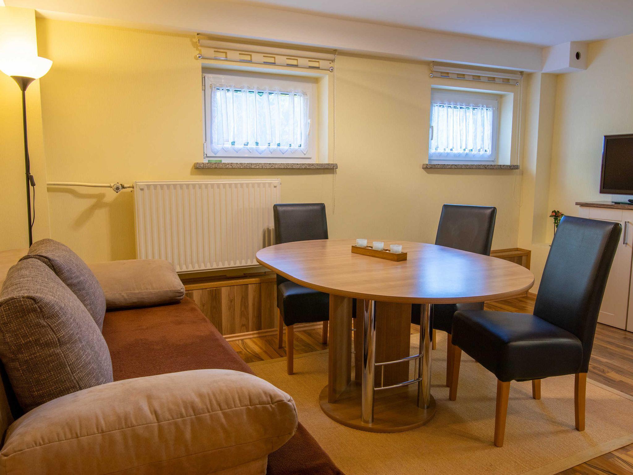 Die Ferienwohnung befindet sich im Haus der Eigentümer ist aber über einen seperaten Eingang erreichbar. Die 3-Raum-Wohnung verfügt über 2 Schlafräume, einer mit einem Doppelbett (180x200cm), einer mit einem französischen Bett (140x200cm). Am Wohnraum grenzt eine offene Küche an, das Badezimmer verfügt über Dusche und WC. Der Flur ist großzügig gestaltet.