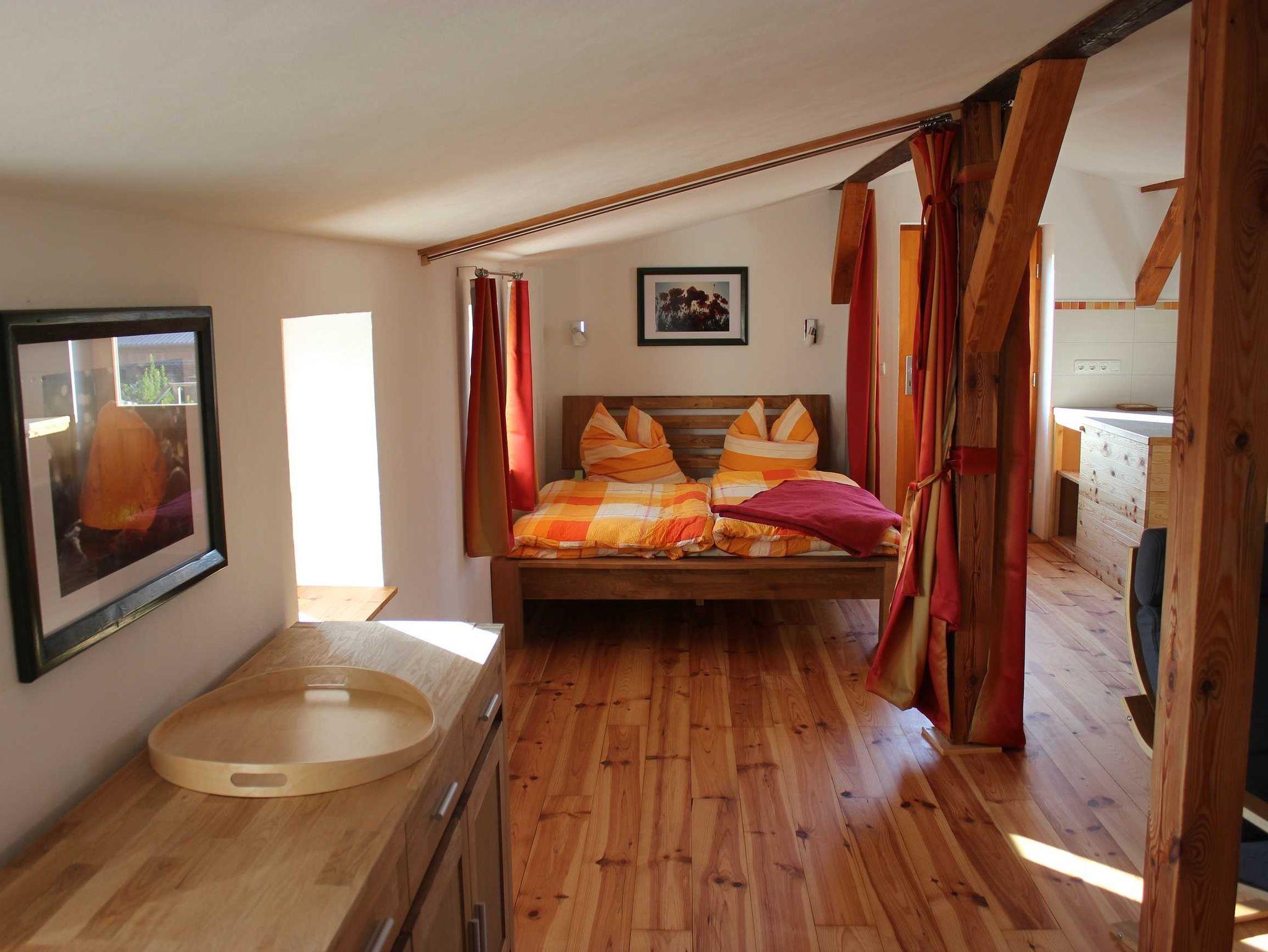 Die Ferienwohnung Galerie befindet sich im sanierten Nebengebäude unseres Hofes. Es stammt von 1889 und diente als Heuboden. Wir haben die Wohnung 2015 /16 liebevoll zu einer gemütlichen Ferienwohnung für zwei bis vier Gäste ausgebaut.