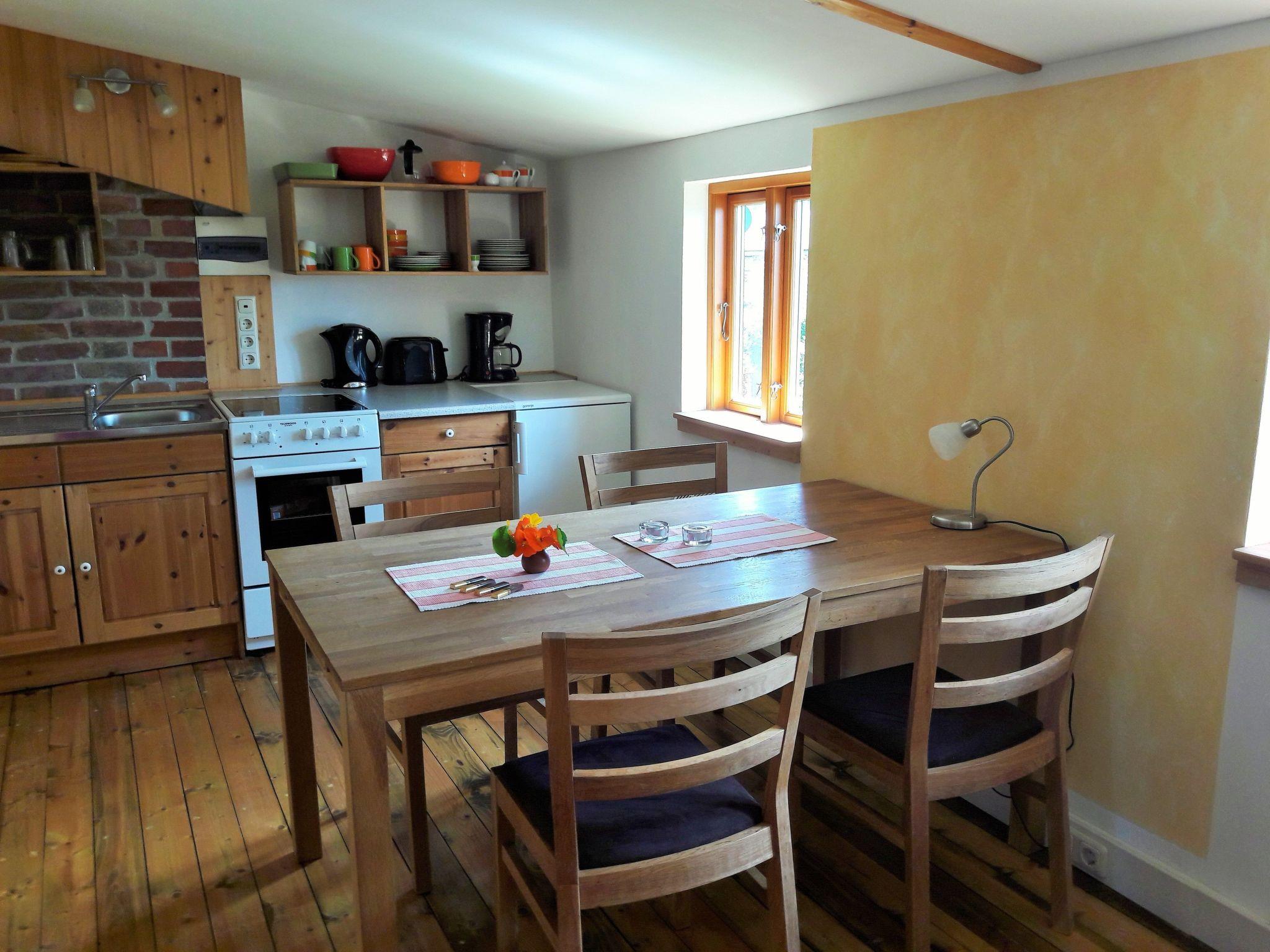 Welcome to our lovingly renovated flat on the upper floor of an old boat barn - quietly located on our spacious farm. Ideal for couples and families with up to three children. The lake or idyllic forest paths are just a few minutes' walk away - perfect for switching off and taking a deep breath.
