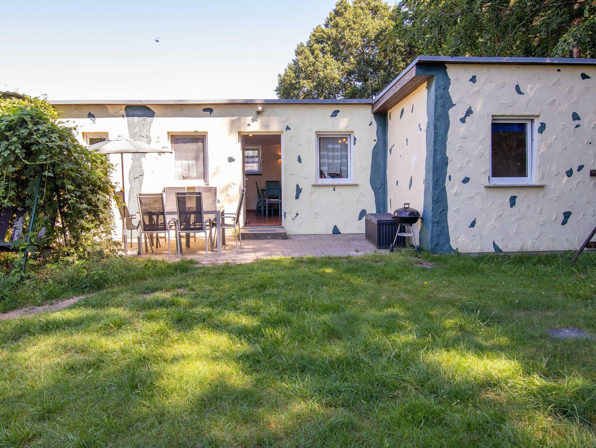 Das Ferienhaus Jürgens liegtim Süden von Kröslin, direkt am Waldrand, auf dem Grundstück der Vermieter. Das separat stehende Ferienhaus bietet 54m² Wohnfläche - ideal für Familien, Paare oder gemeinsam reisende Freunde, die eine naturnahe und ruhige Unterkunft suchen. Das Haus bietet Platz für bis zu 6 Personen und verfügt über ein großes Wohnzimmer mit Schlafsofa, Esstisch und praktisch ausgestatteter Küchenzeile, zwei separate Schlafzimmer sowie ein Badezimmer mit Dusche und WC. Eines der Schlafzimmer ist mit einem Doppelbett eingerichtet, das zweite mit zwei Einzelbetten. Die Schlafsofa im Wohnbereich bietet bei Bedarf zwei weitere Schlafplätze. Alle Räume sind beheizbar, zusätzlich sorgt eine Fußbodenheizung im Bad und im Wohnzimmer für angenehme Wärme an kühleren Tagen. Zu jedem Haus gehört eine eigene Terrasse mit Sitzmöbeln und Sonnenschirm - ein schöner Platz für das Frühstück an der frischen Luft oder einen ruhigen Abend im Grünen. Auf dem Grundstück steht ein großer Räucherofen zur Verfügung, der gerne zum Räuchern selbstgefangener Fische genutzt werden darf. Der Hund der Vermieter lebt mit auf dem Gelände und darf sich frei im Garten bewegen.