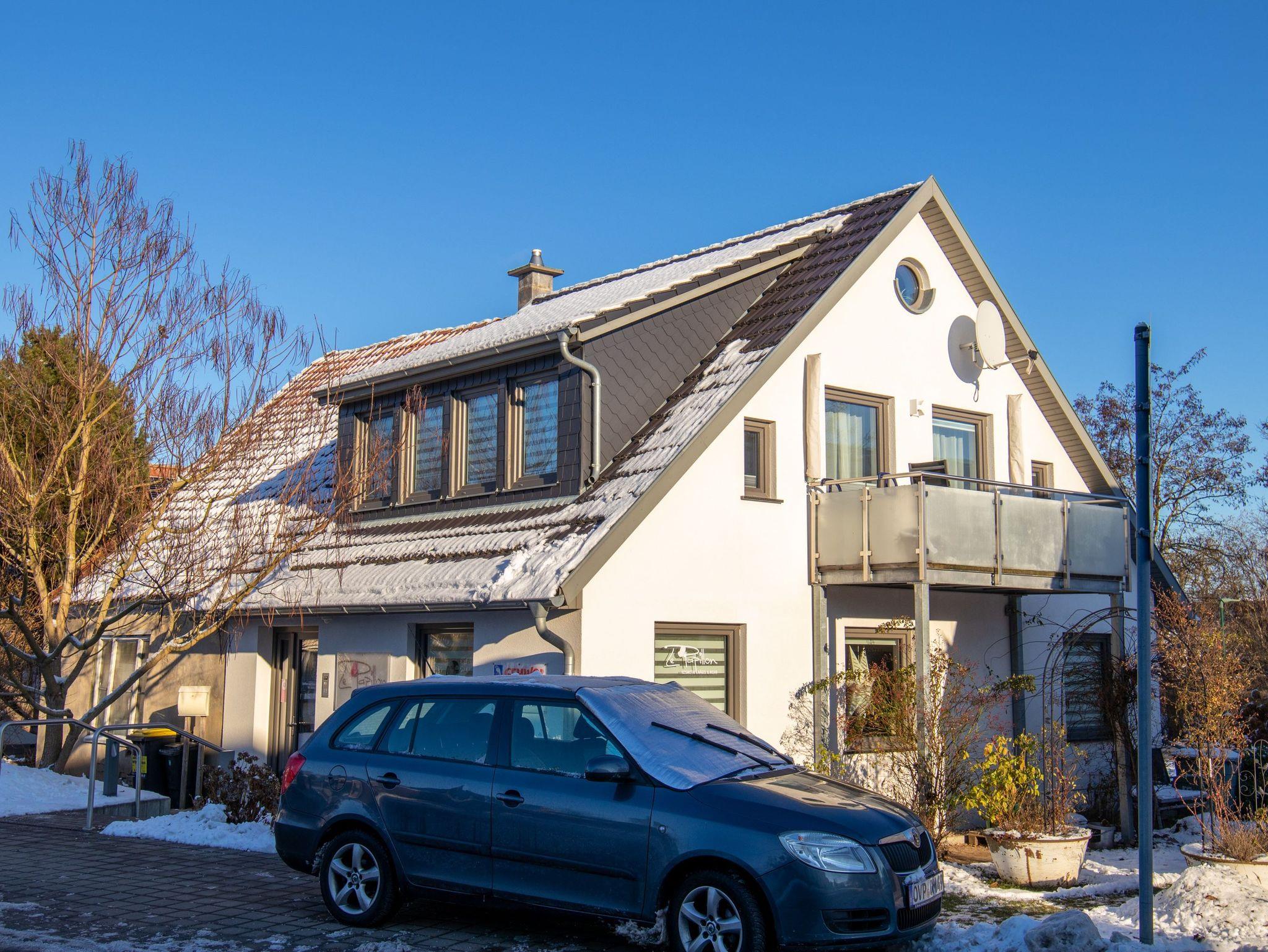 Die Ferienwohnung mit Balkon befindet sich im Obergeschoss eines Geschäftshauses (in der unteren Etage ist ein Kosmetikstudio). Im Wohnbereich mit Küchenzeile und gemütlicher Sitzecke, Schlafzimmer mit Doppelbett, einem Schlafbereich im Dachgeschoss (Deckenhöhe 1,60m!) mit zwei Einzelbetten und einem Bad ist bietet die Ferienwohnung genügend Platz für zwei bis vier Personen. Ein kleiner Balkon, welcher vom Schlafzimmer als auch vom Wohnzimmer zu begehen ist, lädt zum gemütlichen Verweilen ein.