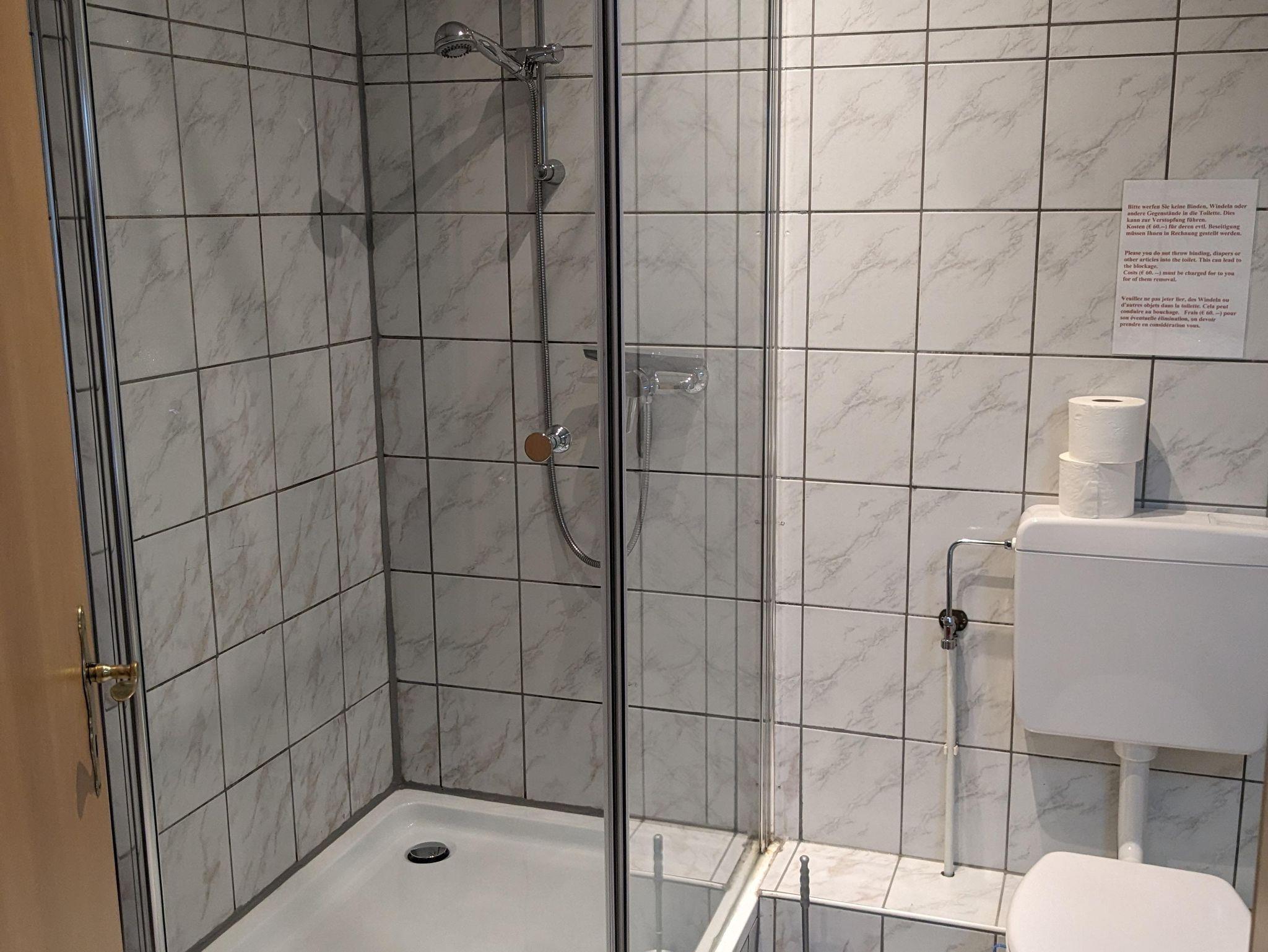 • Die drei Bäder sind ausgestattet mit, WC, Dusche/Waschbecken, Kosmetikspiegel, Haarföhn, Handseife und ein Handtuch sowie Klopapier (Erstversorgung).