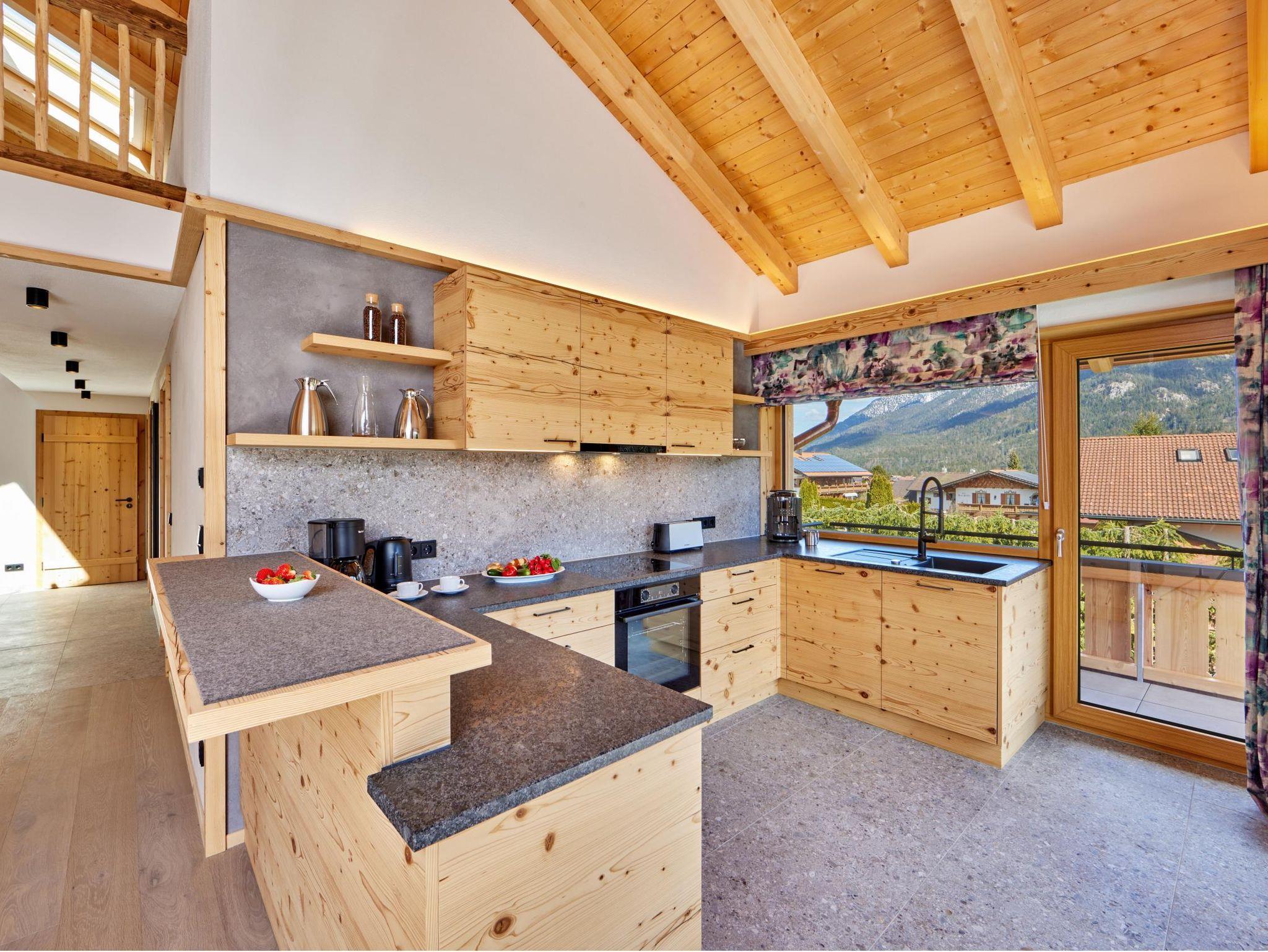 Es erwarten Sie 4 neu gebaute Ferienwohnungen in Krün mit allem Komfort von regionalen Handwerkern passgenau mit naturbelassenem, massivem Fichtenholz alpin ausgestattet. Wir bieten Ihnen in Krün Ferienwohnungen für 2 bis zu 6 Personen. Die offene Küche in Ihrer Ferienwohnung bietet jeden Komfort für kulinarische Genüsse. In Ihrer Ferienwohnung tragen nicht nur die von Schreinerhand, naturbelassenen Holzbetten zu einem außergewöhnlichen Wohnklima bei, auch die großen Panoramafernster lassen durch Licht und Sonne die Seele beleben. Hier in Krün sind unsere Ferienwohnungen mit allem ausgestattet um Ihren Urlaub zum Erlebnis werden zulassen.